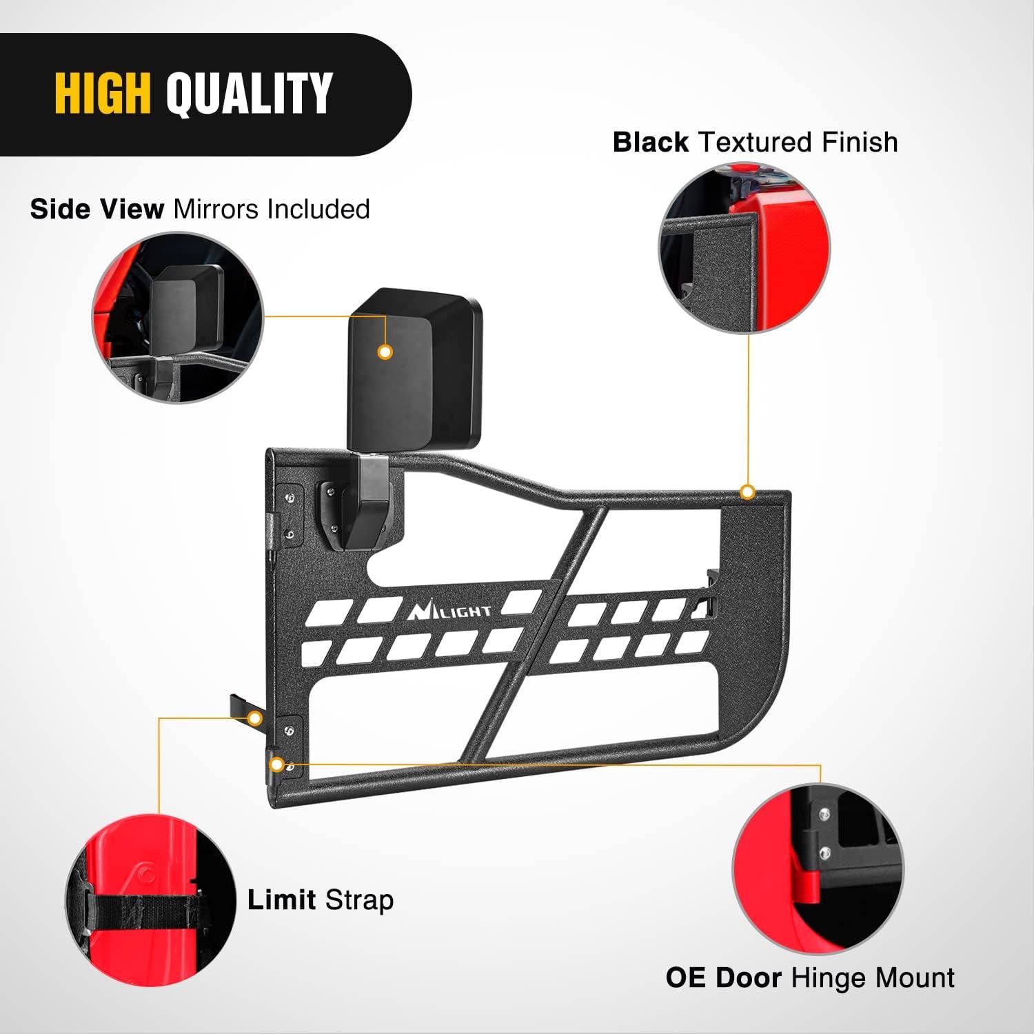Nilight Off Road Front Rear Tubular Doors with Side View Mirrors Compatible with 2018 2019 2020 2021 2022 2023 Wrangler JL 2020 2021 2022 2023 Gladiator JT 4 Door Only, 2 Years Warranty(Front Bumper 2018-2025 JL)
