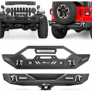 Nilight Off Road Front Rear Tubular Doors with Side View Mirrors Compatible with 2018 2019 2020 2021 2022 2023 Wrangler JL 2020 2021 2022 2023 Gladiator JT 4 Door Only, 2 Years Warranty(Front Bumper B +Rear Bumper JL)