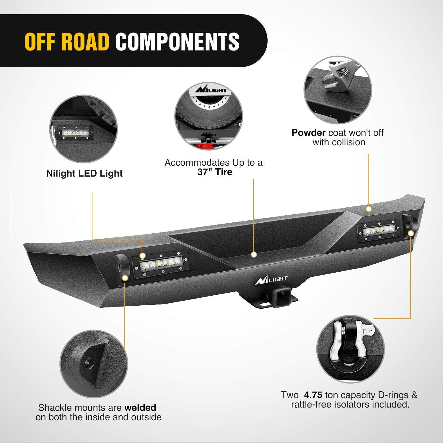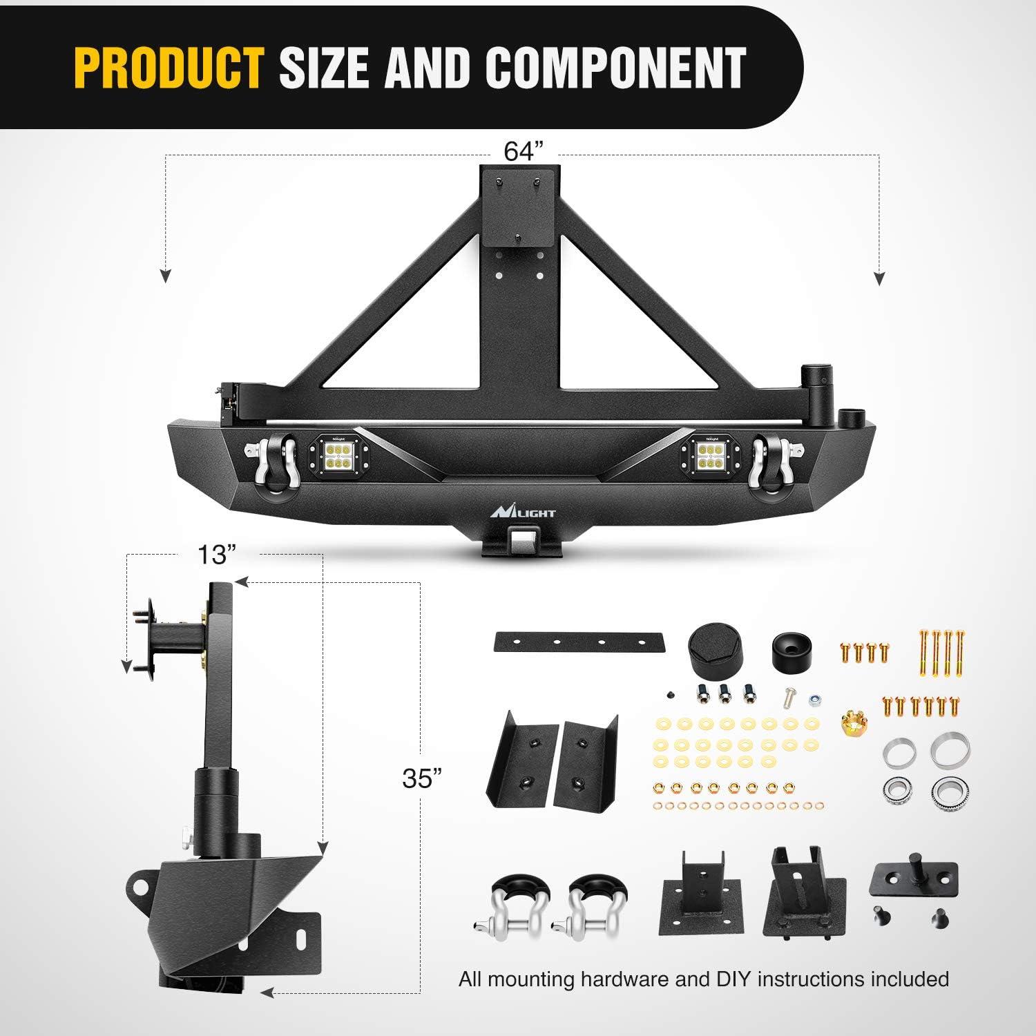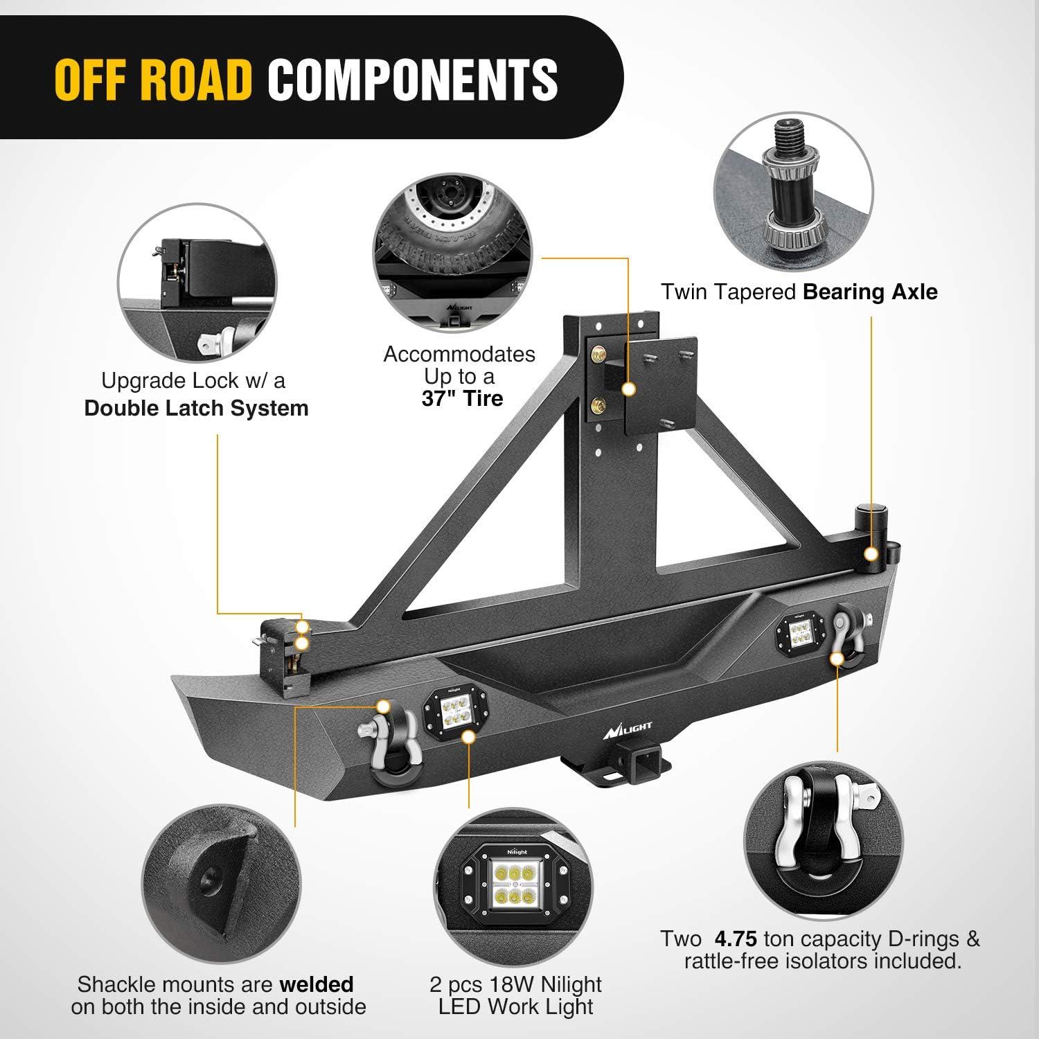 Nilight Door Storage Rack Movable Cart Door Holder Sliding Bracket Hanger for Wrangler JK JL Gladiator JT 2007 2008 2009 2010 2011 2012 2013 2014 2015 2016 2017 2018 2019 2020 2021 2022 2023 2024 2025(JK Rear Bumper 2007-2018)