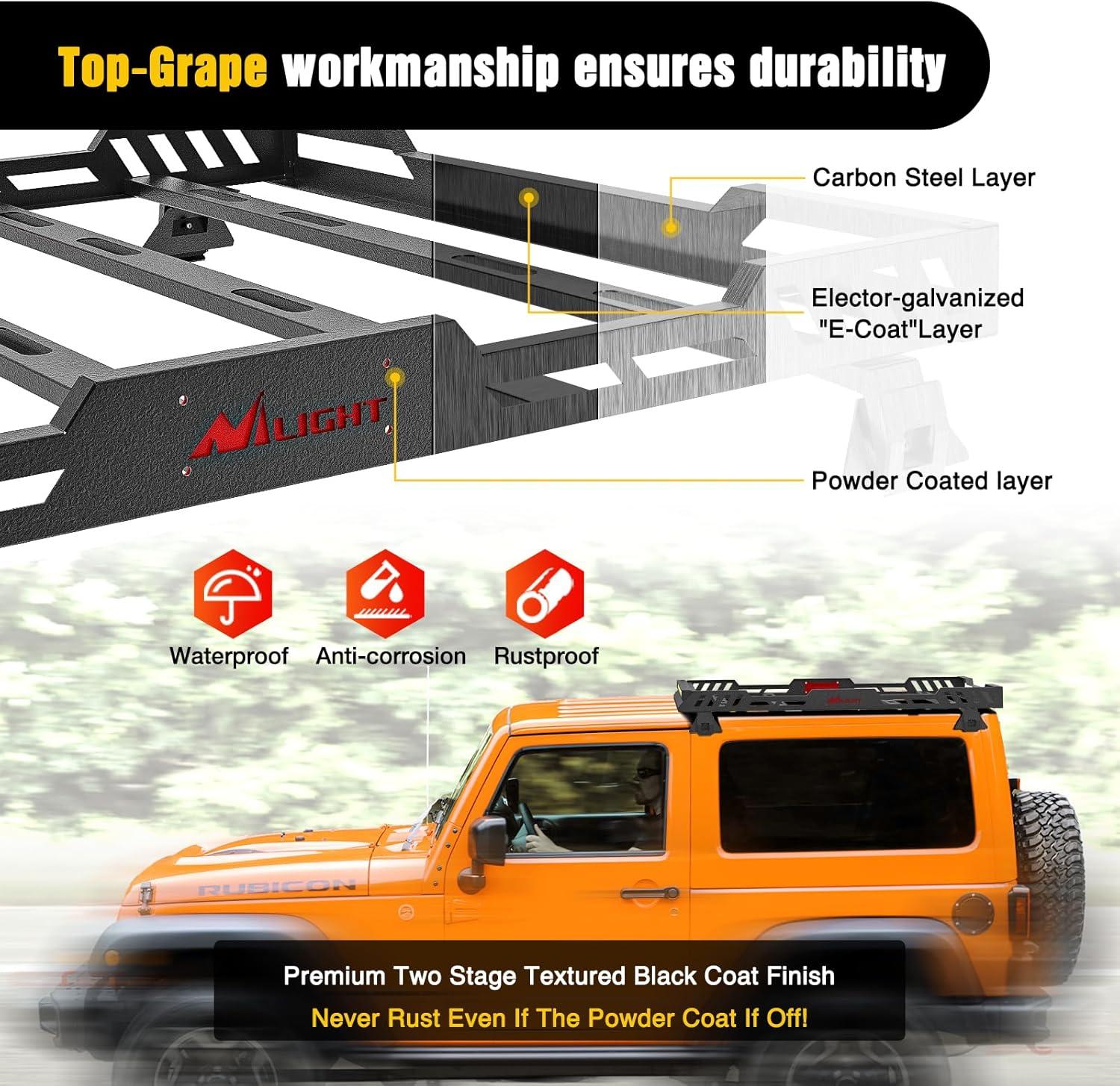 Nilight Door Storage Rack Movable Cart Door Holder Sliding Bracket Hanger for Wrangler JK JL Gladiator JT 2007 2008 2009 2010 2011 2012 2013 2014 2015 2016 2017 2018 2019 2020 2021 2022 2023 2024 2025(JK Front Bumper 2007-2018)