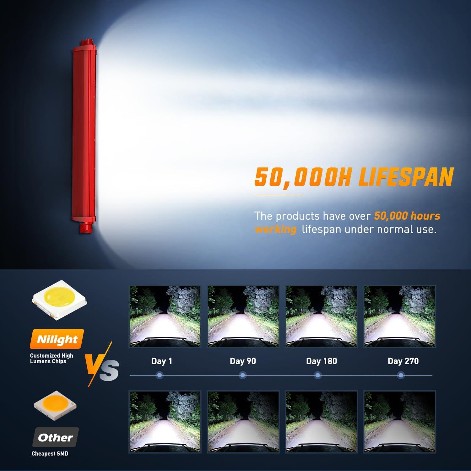 Nilight 60″ Truck Tailgate Light Bar 108 LED Single Row Light Strip with Red Running Brake Lights Turn Signal White Reverse Light, 2 Years Warranty