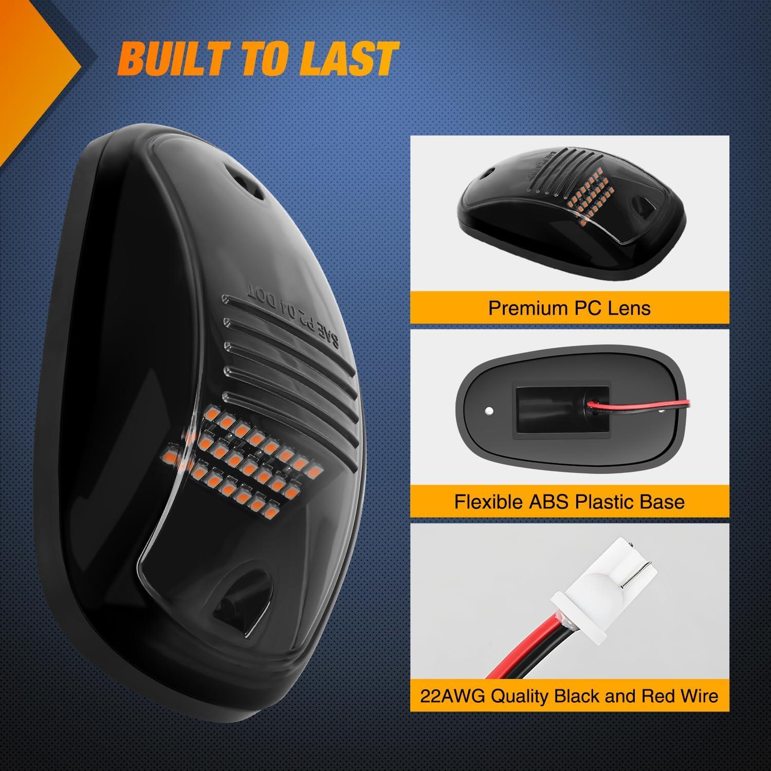 Nilight Cab Roof Marker Light 5 PCS 18 LED Amber Torpedo Top Clearance Indicator Lights Waterproof Surface Mount for Heavy Duty Trucks Trailer Camper RV Tractor