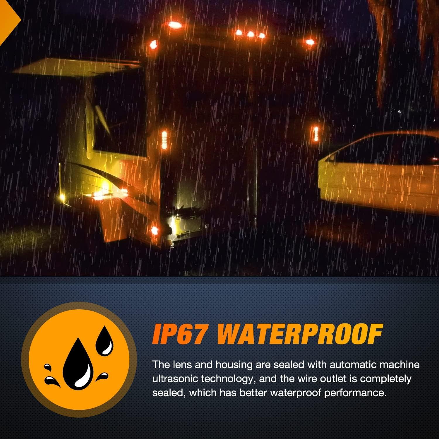 Nilight TL-03 10 PCS 3/4” Round Clearance LED Front Rear Side Indicator Bullet Marker Light for Truck RV Car Bus Trailer Van Caravan Boat (12V, Amber)(14Pcs Amber Red)