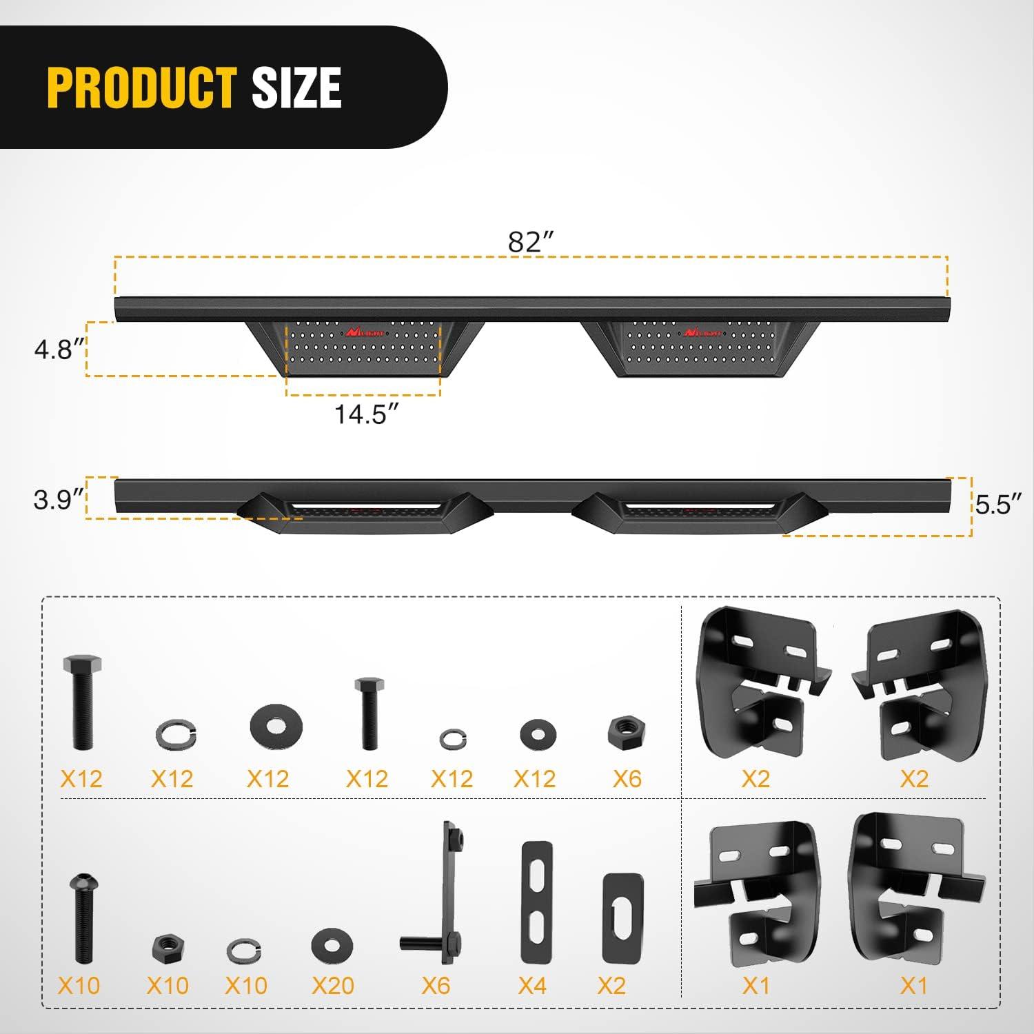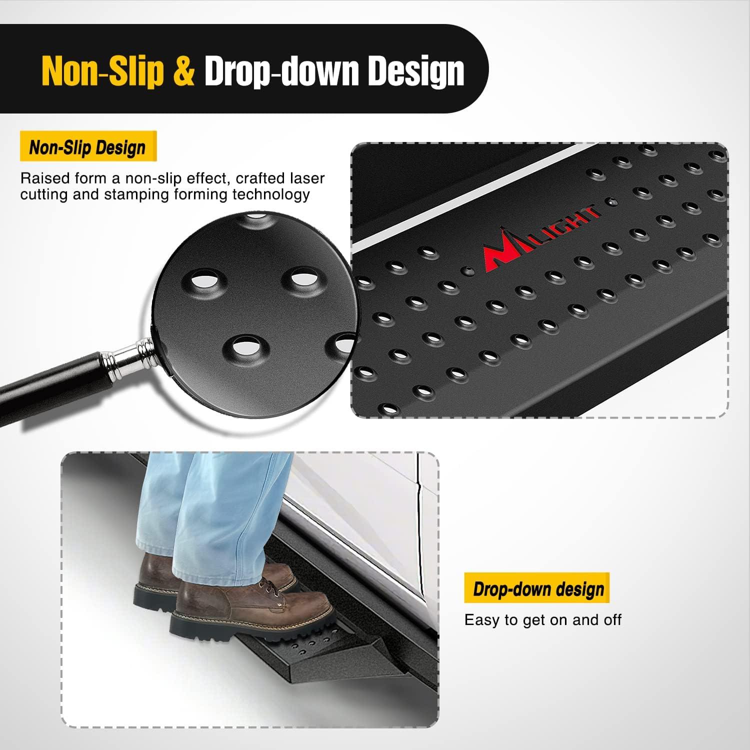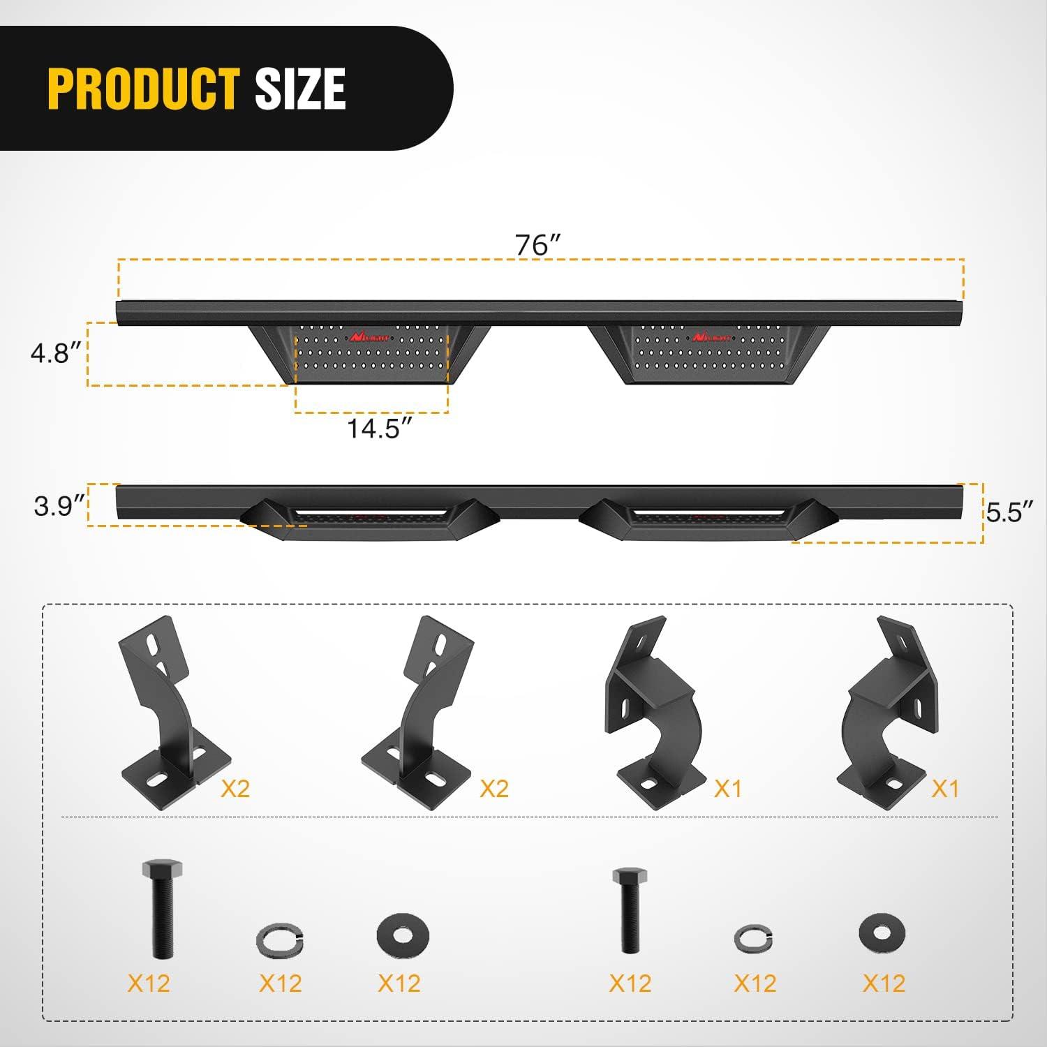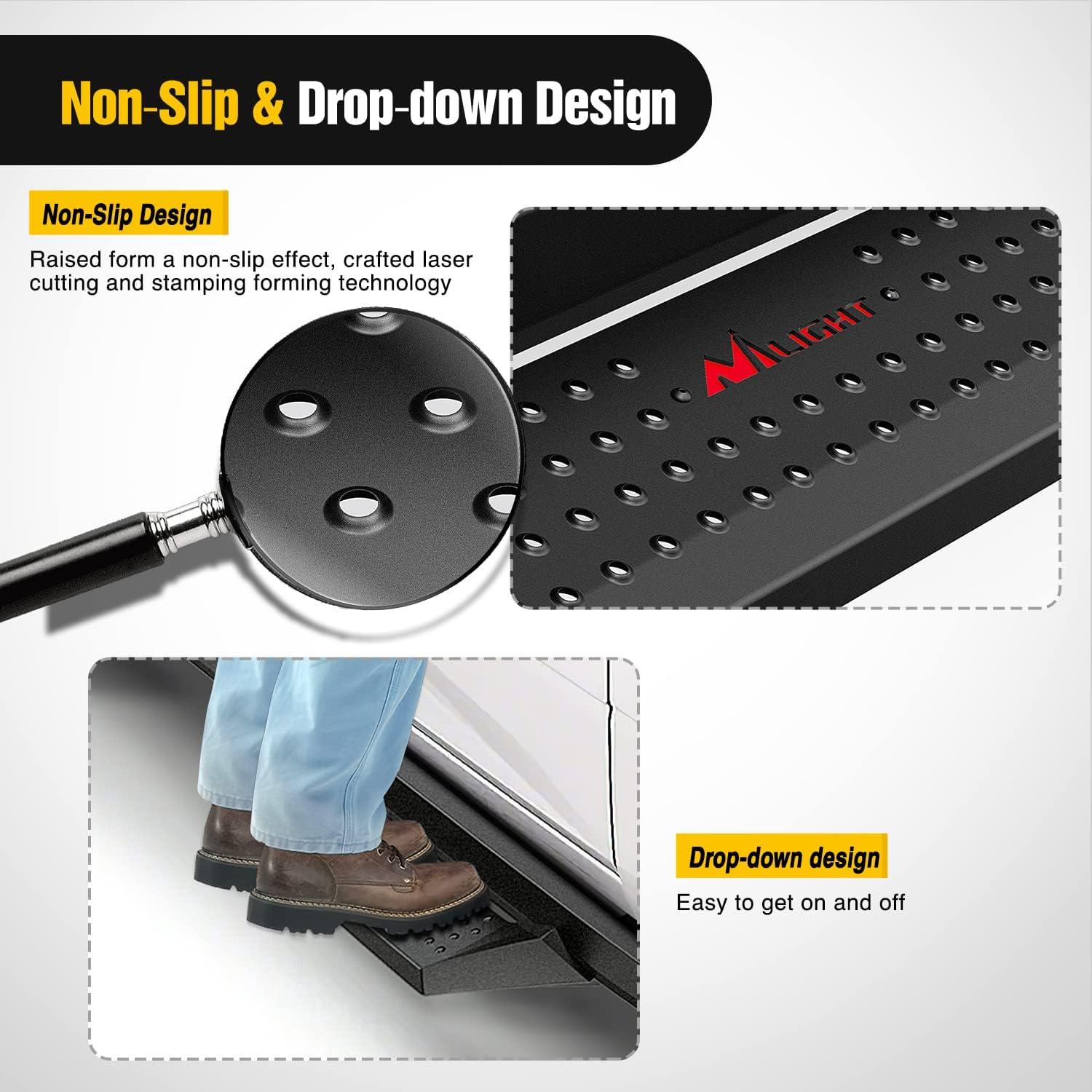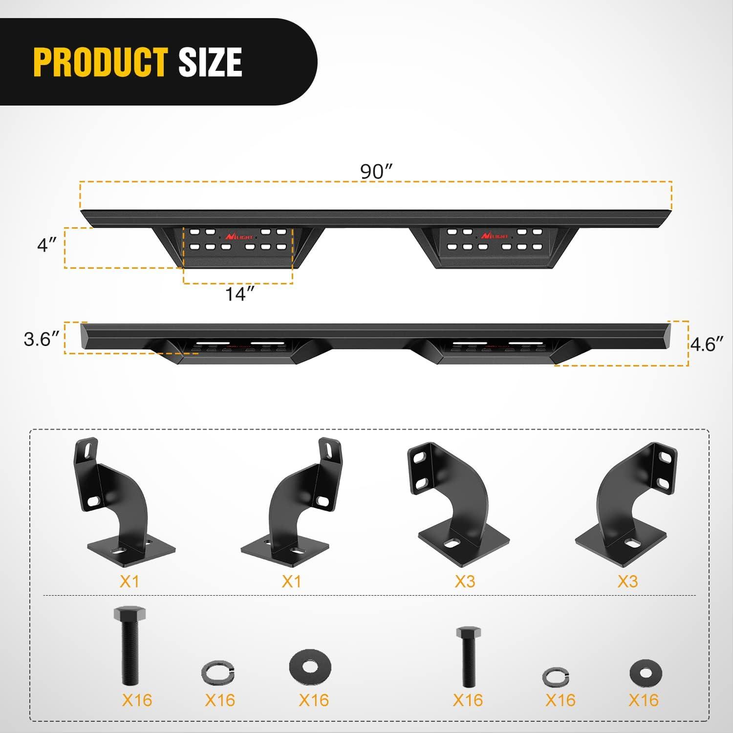 Nilight Universal Side Step Slip-Proof Aluminum Side Hoop Steps Nerf Bars Assembly Black 4 Pcs for Chevy (Chevrolet) Ford Toyota GMC Dodge RAM (Drilling Required)