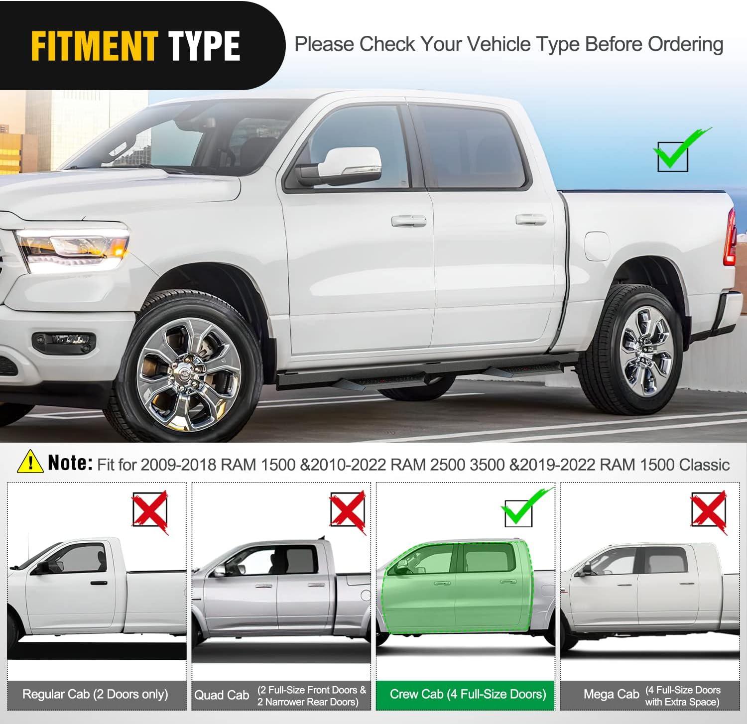 Nilight Running Boards Compatible for 2009-2018 Dodge Ram 1500 Crew Cab 2019-2024 1500 Classic 2010-2024 2500 3500 4 Inch Drop Side Steps Bolt-on Black Powder Coated Nerf Bars