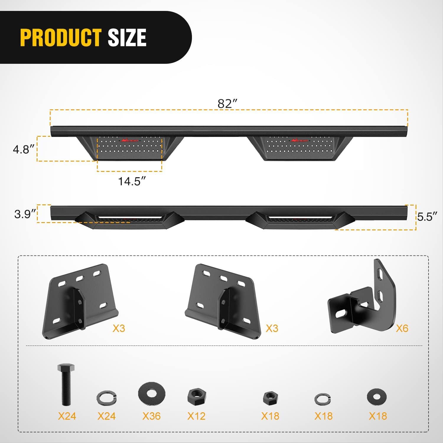 Nilight Running Boards for 2007-2021 Toyota Tundra CrewMax Cab 3.6 Inch Drop Side Steps Bolt-on Black Powder Coated(2005-2023 Crew Cab Toyota Tacoma)