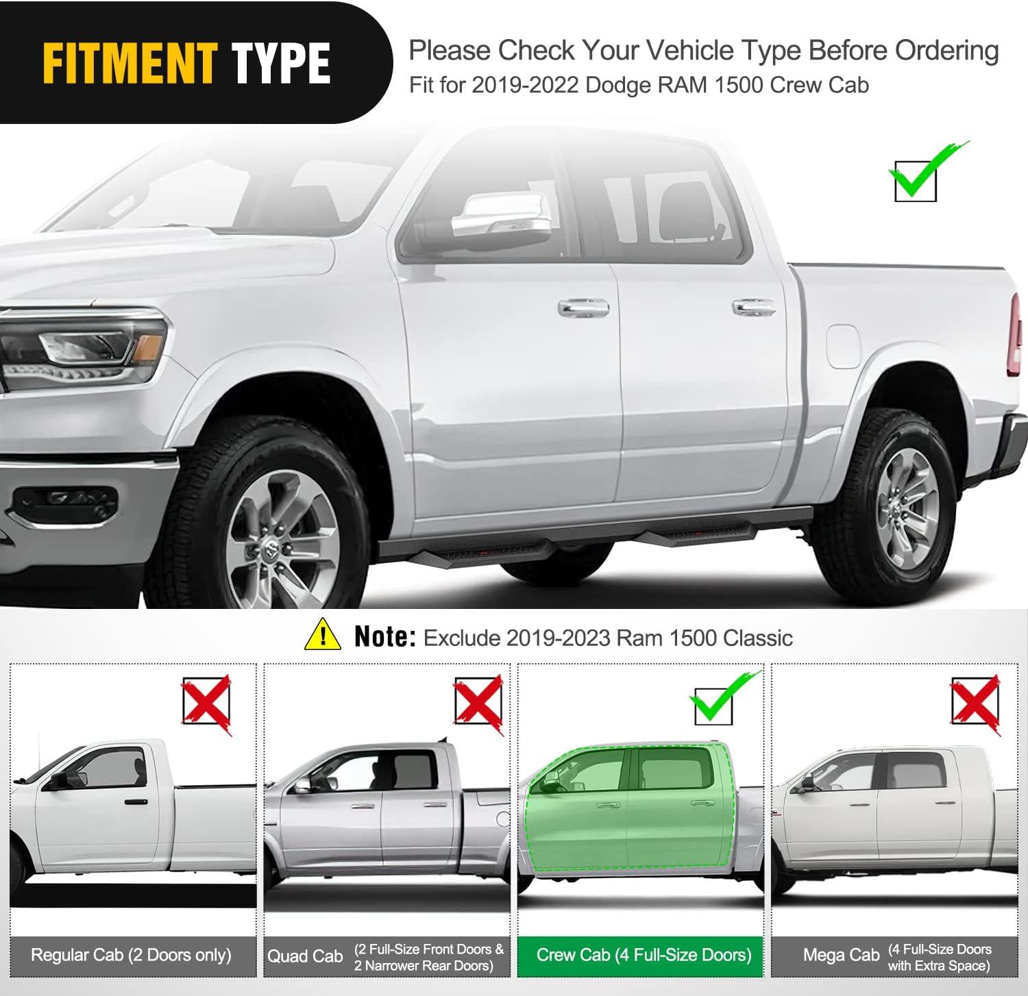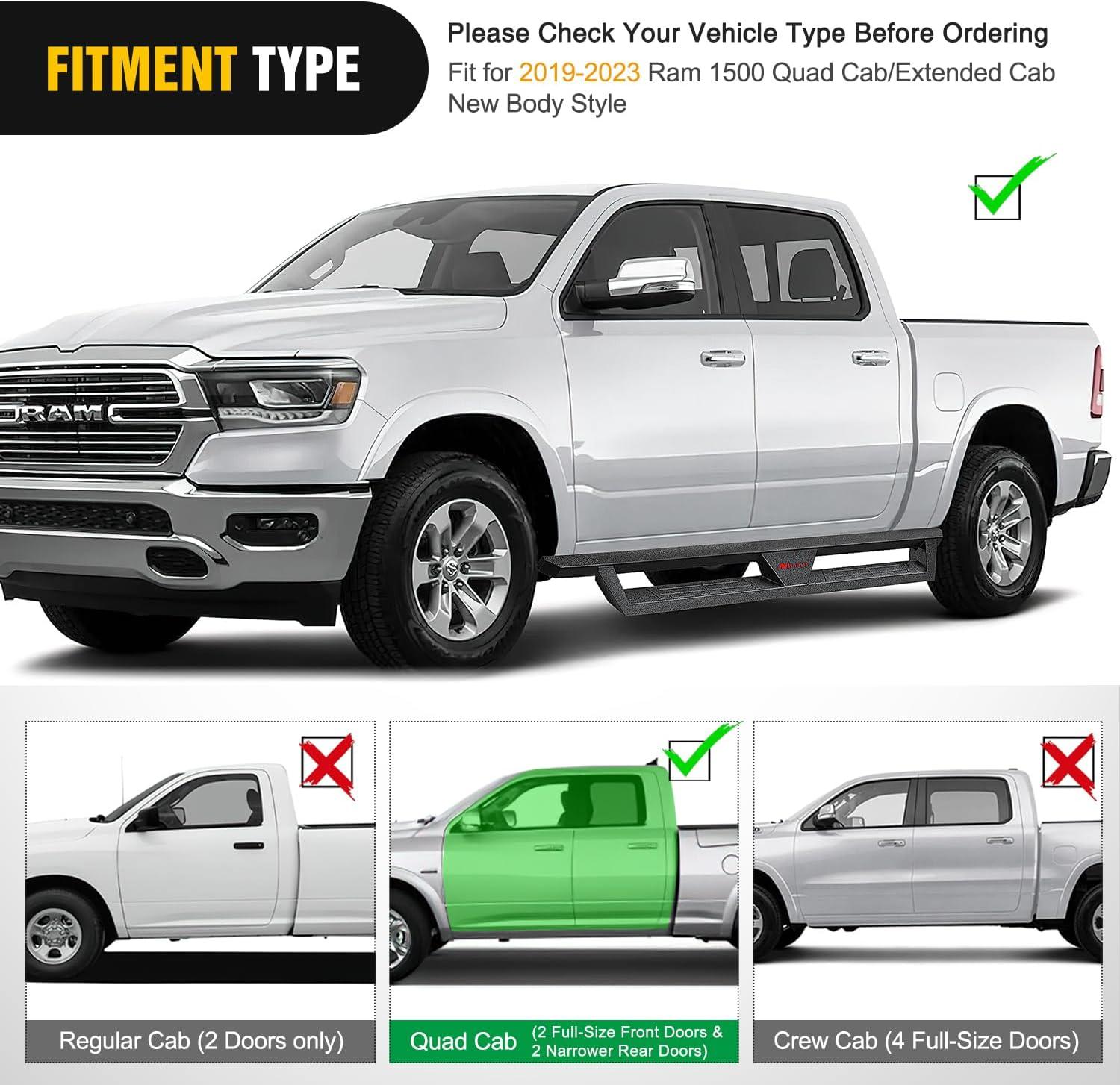 Nilight Running Boards for 2019 2020 2021 2022 2023 2024 Ram 1500 Quad Cab/Extended Cab New Body Style Dual-Stage Textured Black Powder Coated Slip-Proof Side Step Nerf Bars