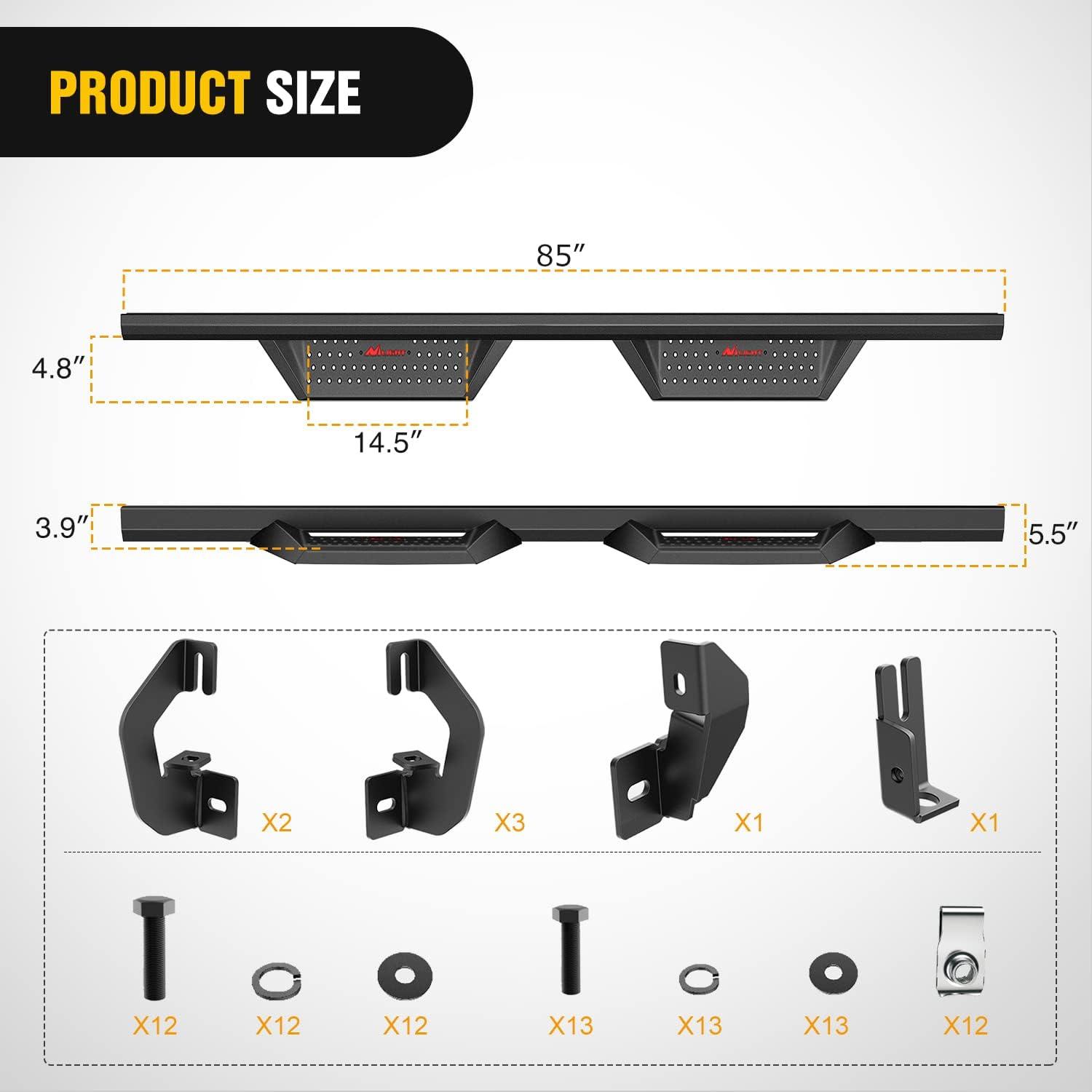 Nilight Running Boards for 2007-2018 Chevy Silverado/GMC Sierra 1500;2007-2019 Chevy Silverado/GMC Sierra 2500HD 3500HD Extended Dual-StageTextured Powder Coated Side Step Nerf Bars(2019-2023 Crew Cab Chevy/GMC)