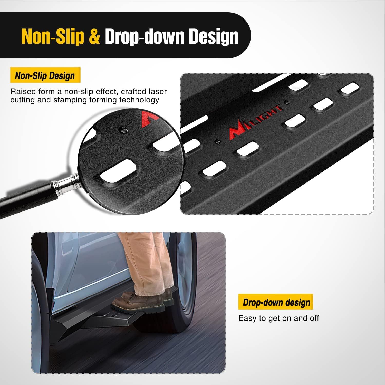 Nilight Hitch Step with 2″ Hitch Receiver Rear Bumper Guard Protector Compatible with Car Truck Vehicles Upgraded Textured Black Hitch Step Bar with Hitch Lock & U-Bolts Stabilize(4Pcs Side Step Universal)