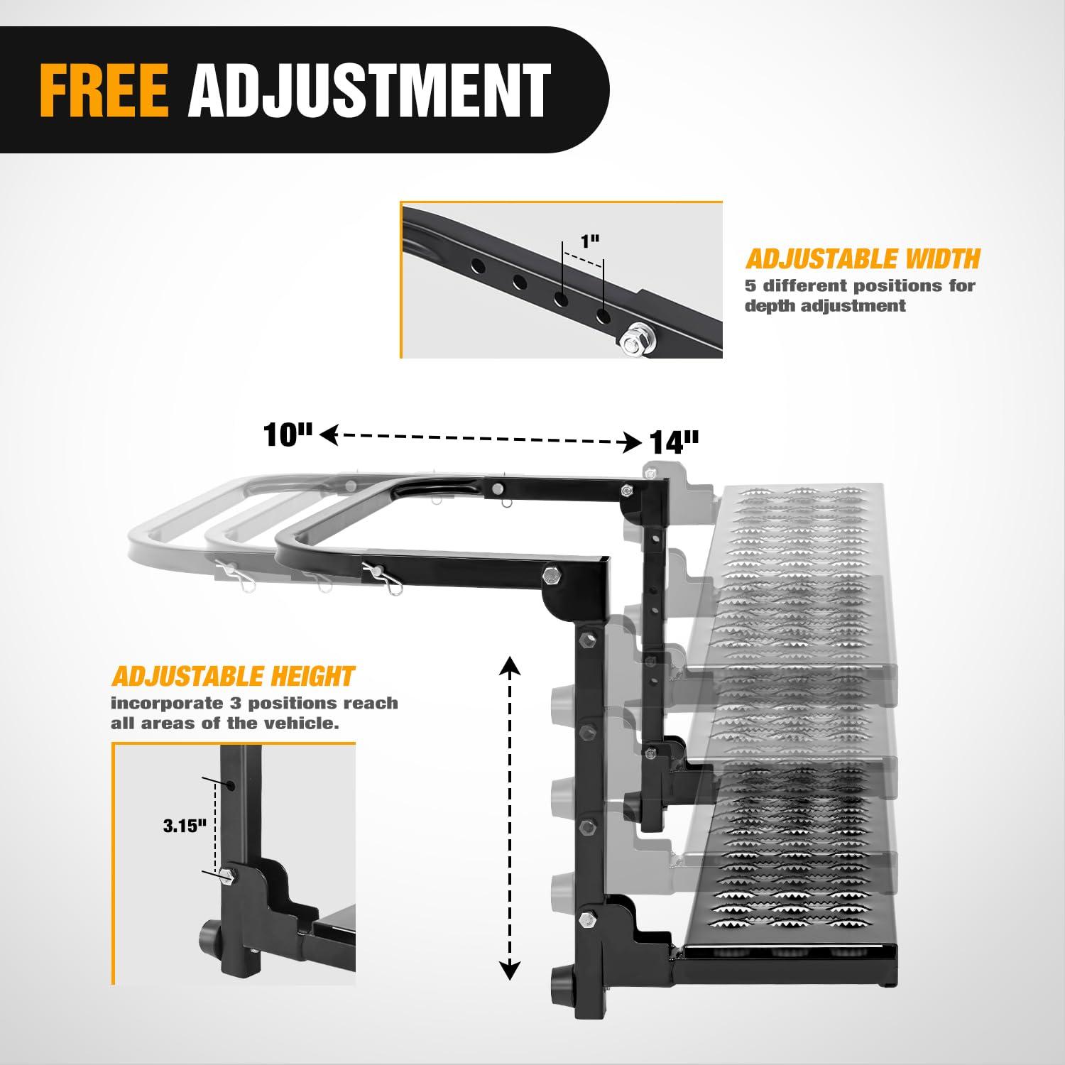Nilight Car Door Step Universal Aluminum Latch Step for Car Roof Access Portable Folding Car Door Latch Hook Step Multi-Adjustable Both Feet Stand Pedal Max Load 500 Lbs for Truck SUV Vehicles, Black(Adjustable Angle Yellow)