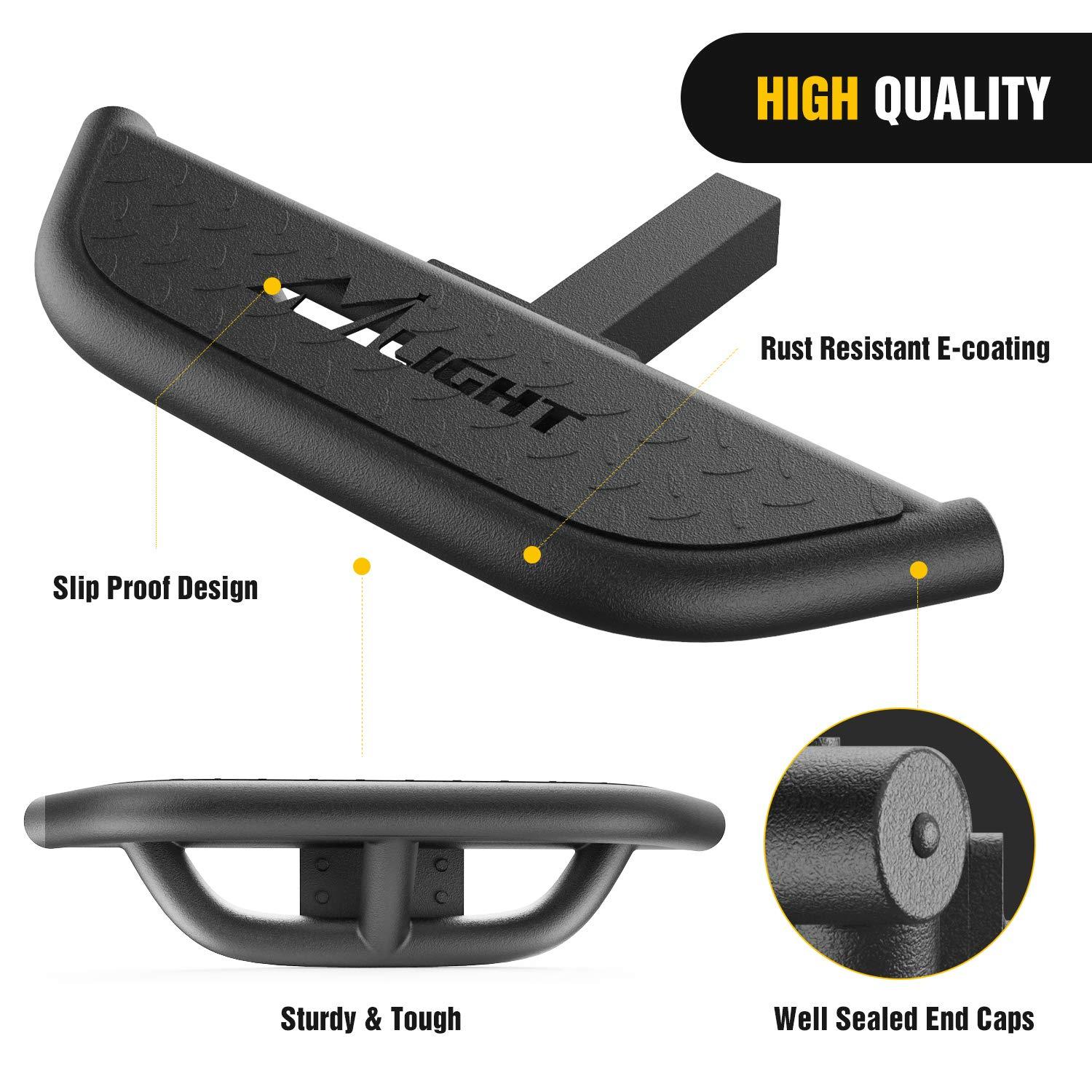 Nilight Hitch Step with 2″ Hitch Receiver Rear Bumper Guard Protector 11.9 Inch with 5/8” Hitch Pin Clip Upgraded Textured Black Anti Slip Hitch Step Bar for Pickup Truck Car SUV(4Pcs Side Step Universal)