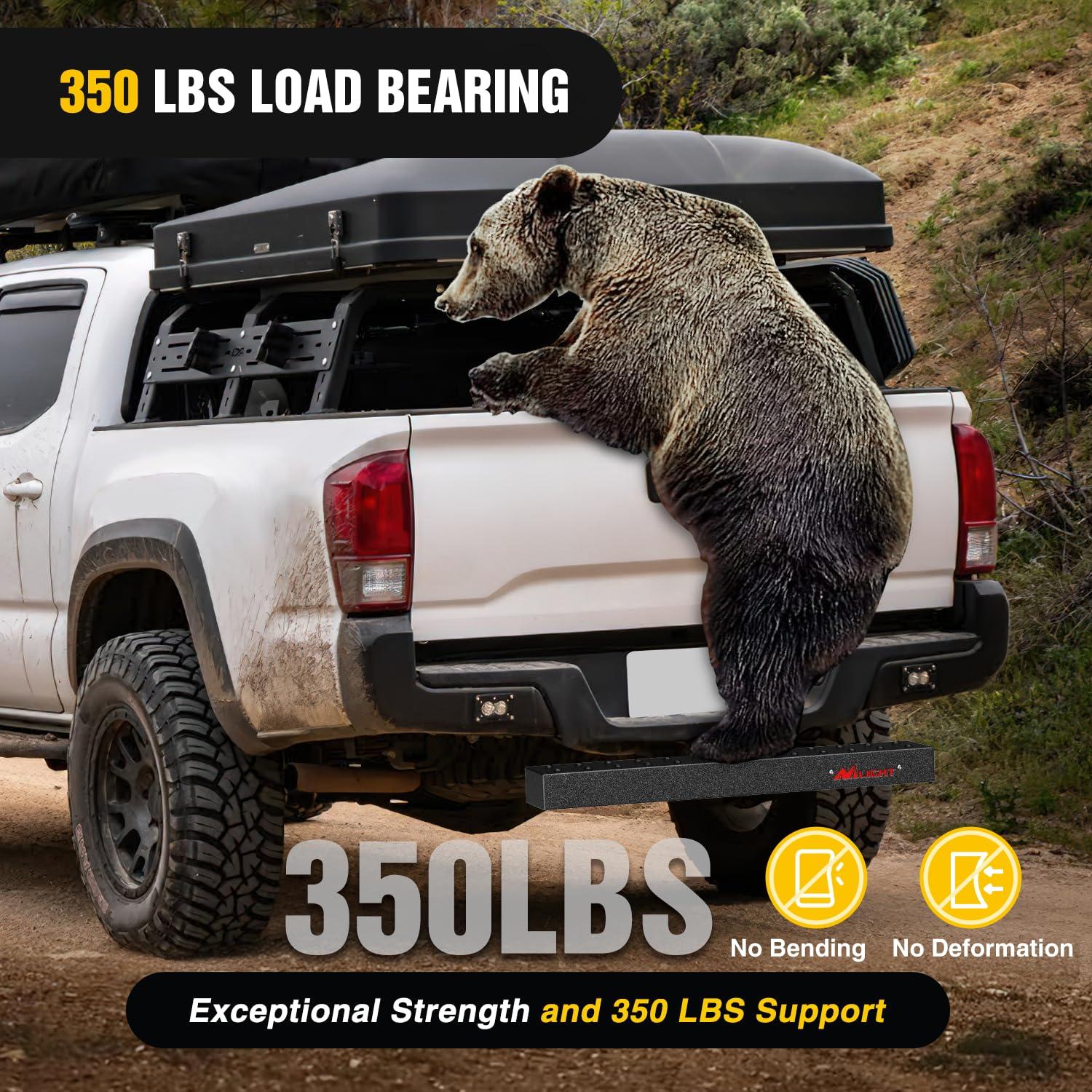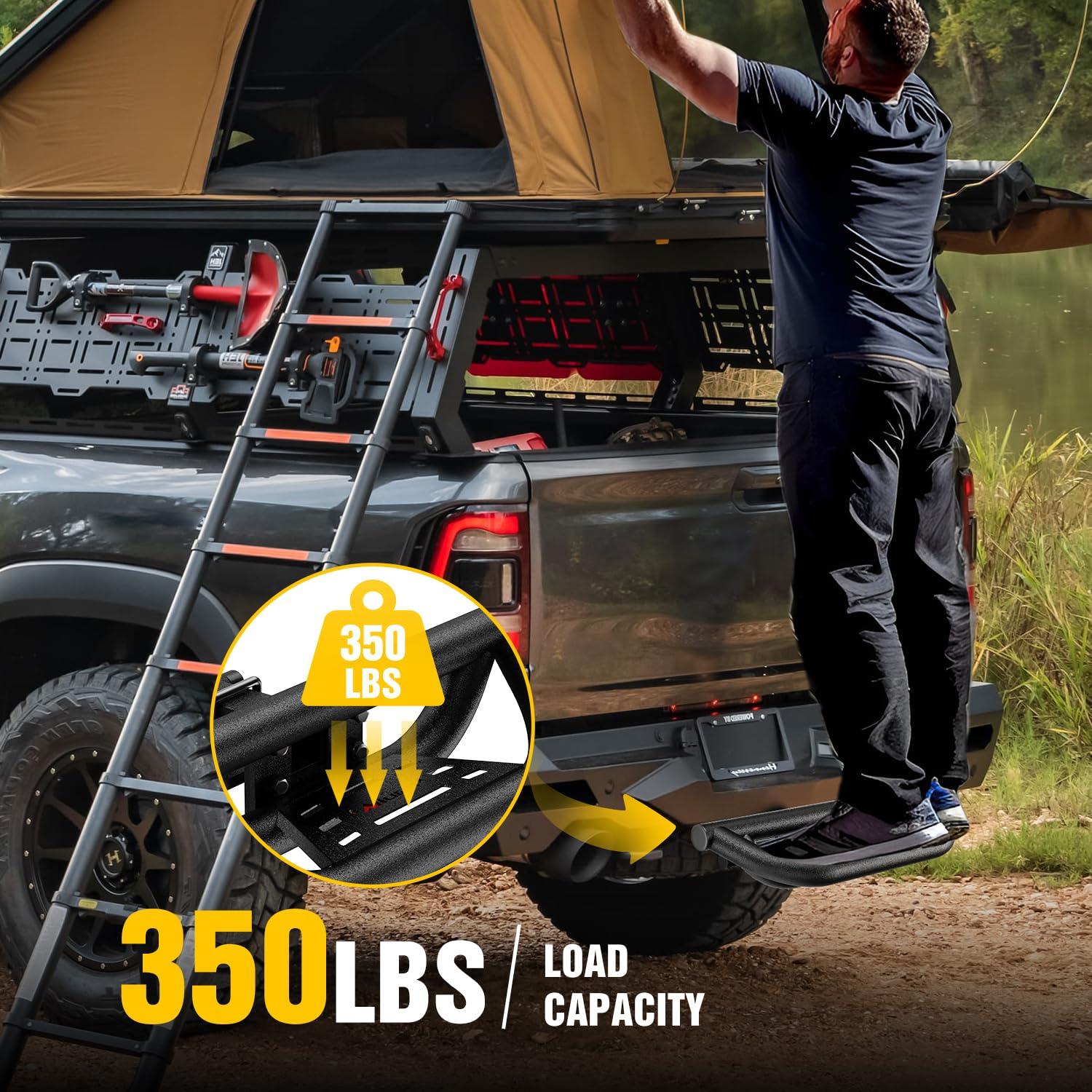 Nilight Foldable Truck Tailgate Ladder for Pickup with Aluminum Step Grip Plates, Replaceable Rubber Feet & Stainless Steel Self Drilling Hex Screws for Easy Installation, 2 Year Warranty