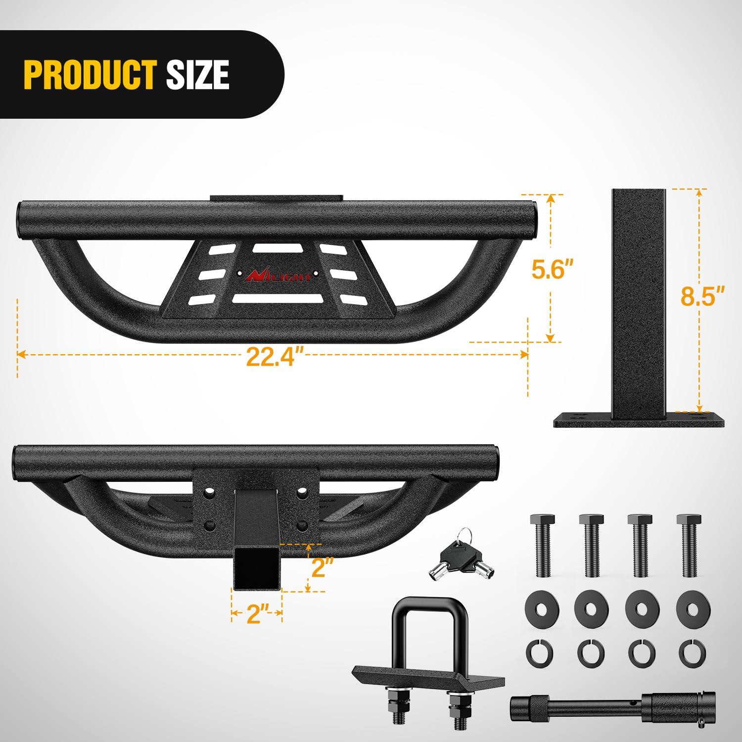 Nilight Hitch Step with 2″ Hitch Receiver Rear Bumper Guard Protector Compatible with Car Truck Vehicles Upgraded Textured Black Hitch Step Bar with Hitch Lock & U-Bolts Stabilize(2Pcs Side Step Universal)