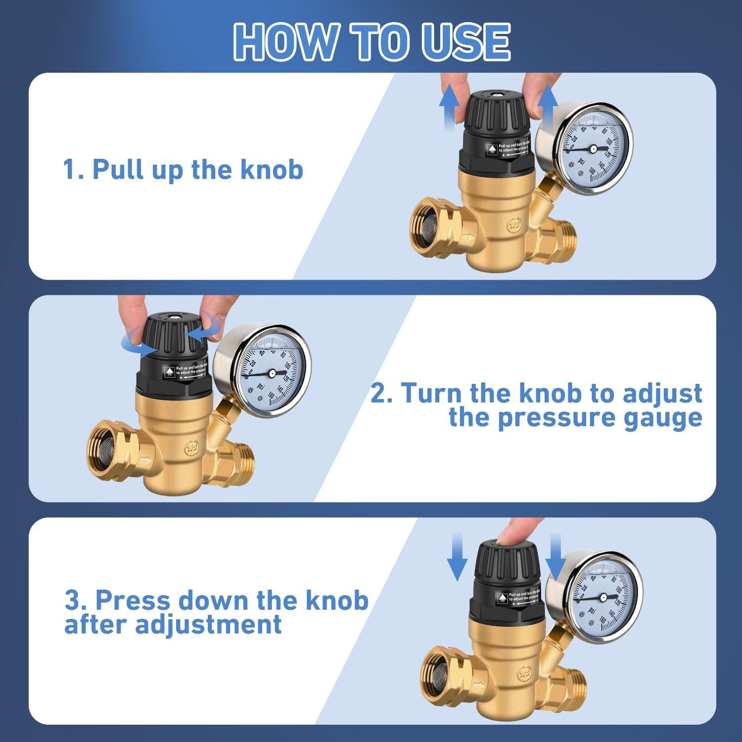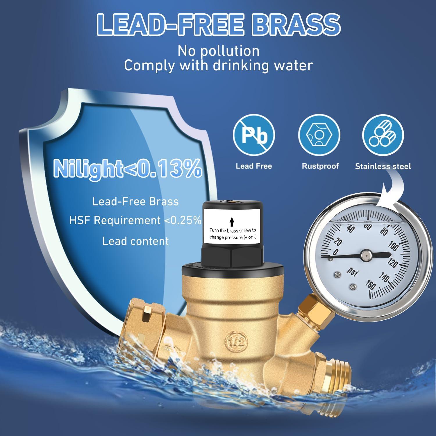 Nilight RV Water Pressure Regulator for RV Camper, Water Hose Pressure Regulator with Oil Filled Gauge and Inlet, Brass Lead-free Adjustable RV Water Pressure Regulator Valve for Camper Travel Trailer(Handwheel adjustment)