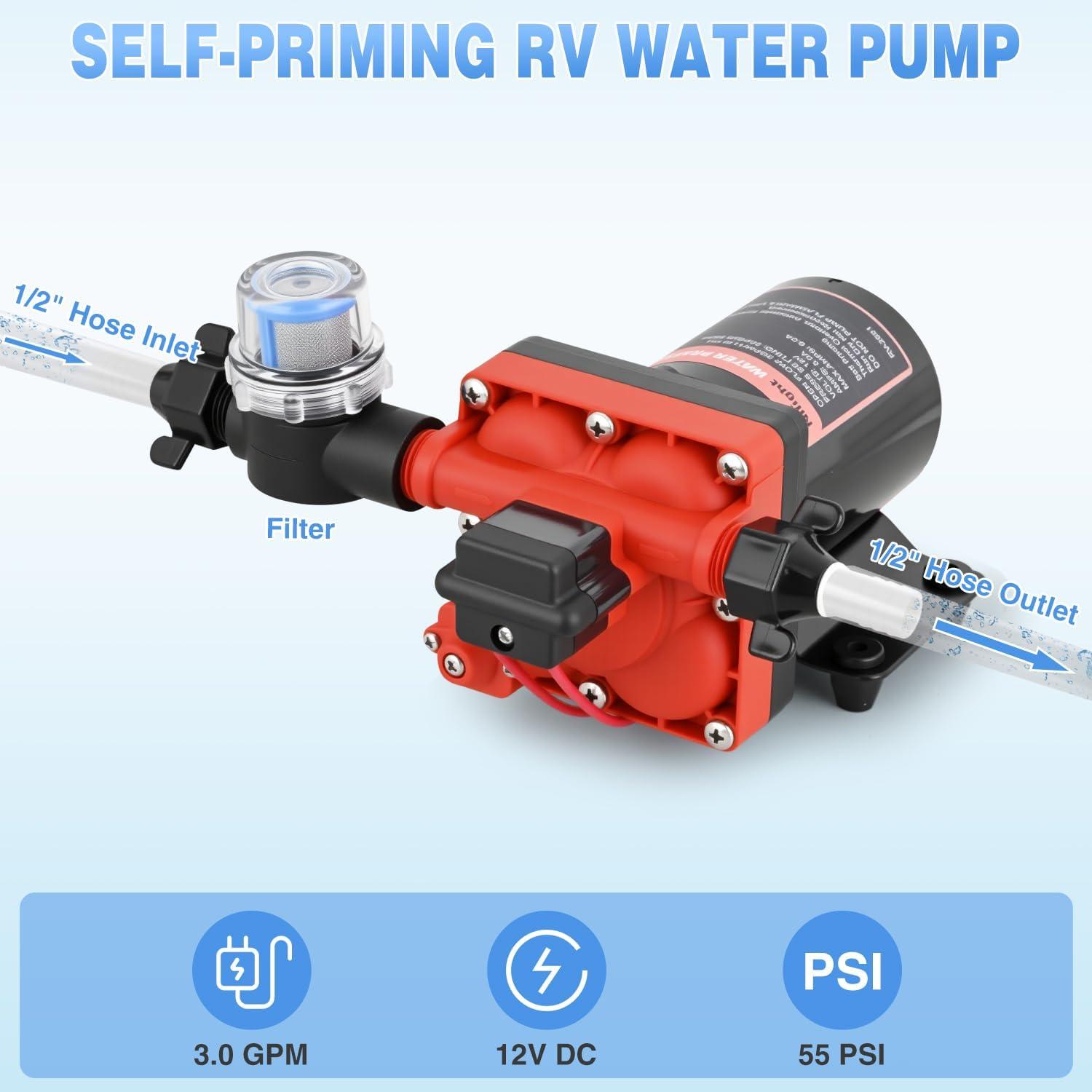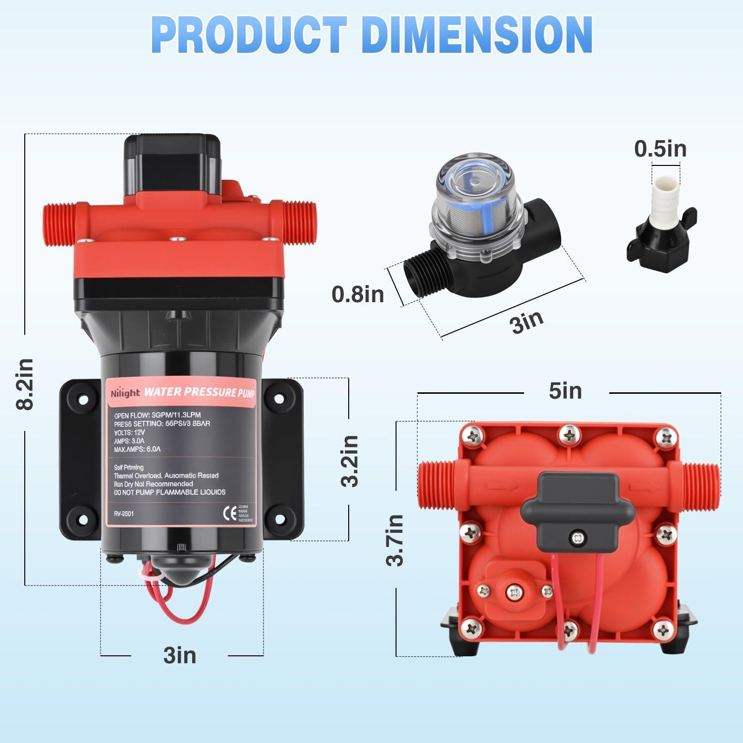 Nilight RV Water Pump, 12v Water Pump 3.5 GPM 45 PSI with Pressure Switch and Strainer Heavy Duty Diaphragm Pump 12 Volt DC Upgrade Self-Priming Low Noice for RV Marine Yacht Caravan Camper Trailer(3.0 GPM Water Pump)