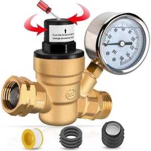 Nilight RV Water Pressure Regulator for RV Camper, Water Hose Pressure Regulator with Oil Filled Gauge and Inlet, Brass Lead-free Adjustable RV Water Pressure Regulator Valve for Camper Travel Trailer(40-50 psi)
