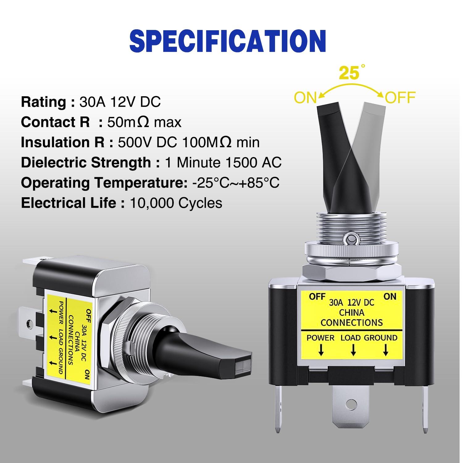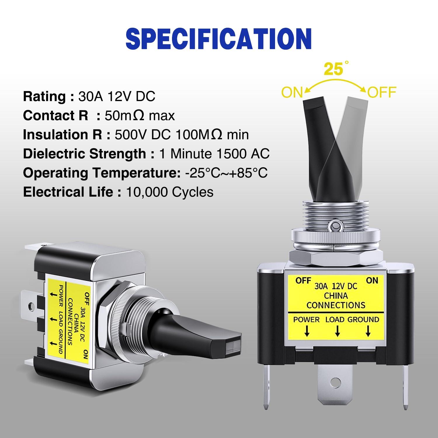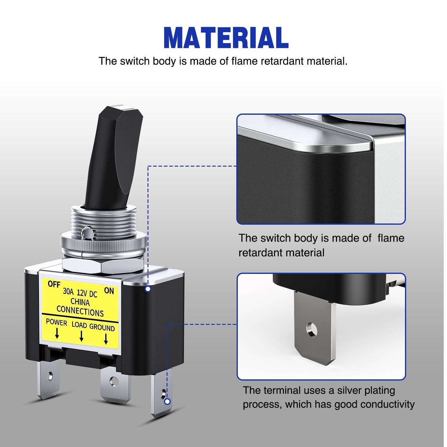 Nilight 5PCS LED Toggle Switch ON Off 12V 30A Blue LED Lighted Metal Switch Heavy Duty SPST 3 Pin Rocker Switch 12mm Mounting Hole for Automotive Cars Trucks Boats Racing Cars,2 Years Warranty(2Pin Toggle Switch-5Pack)