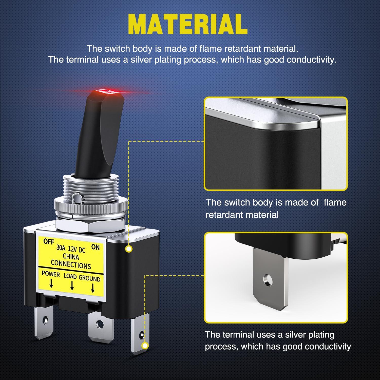 Nilight 5PCS LED Toggle Switch ON Off 12V 30A Blue LED Lighted Metal Switch Heavy Duty SPST 3 Pin Rocker Switch 12mm Mounting Hole for Automotive Cars Trucks Boats Racing Cars,2 Years Warranty(3Pin Led Toggle Switch Red)