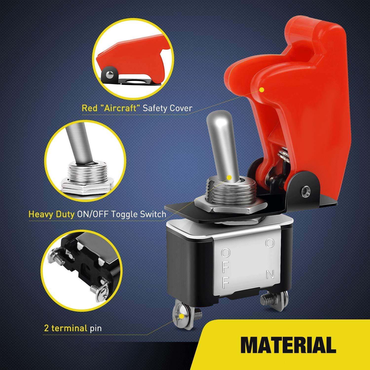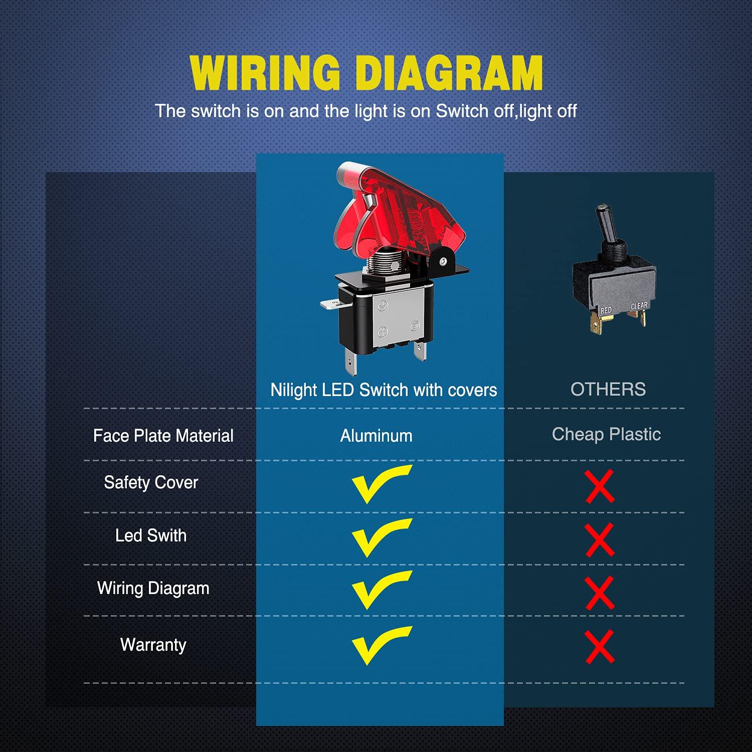Nilight 5PCS LED Toggle Switch ON Off 12V Blue Lighted Aircraft Safety Cover Heavy Duty 20A SPST 3 Pin Rocker for Automotive Cars Trucks Boats Racing Cars,2 Years Warranty(5PCS Led Switch Red)