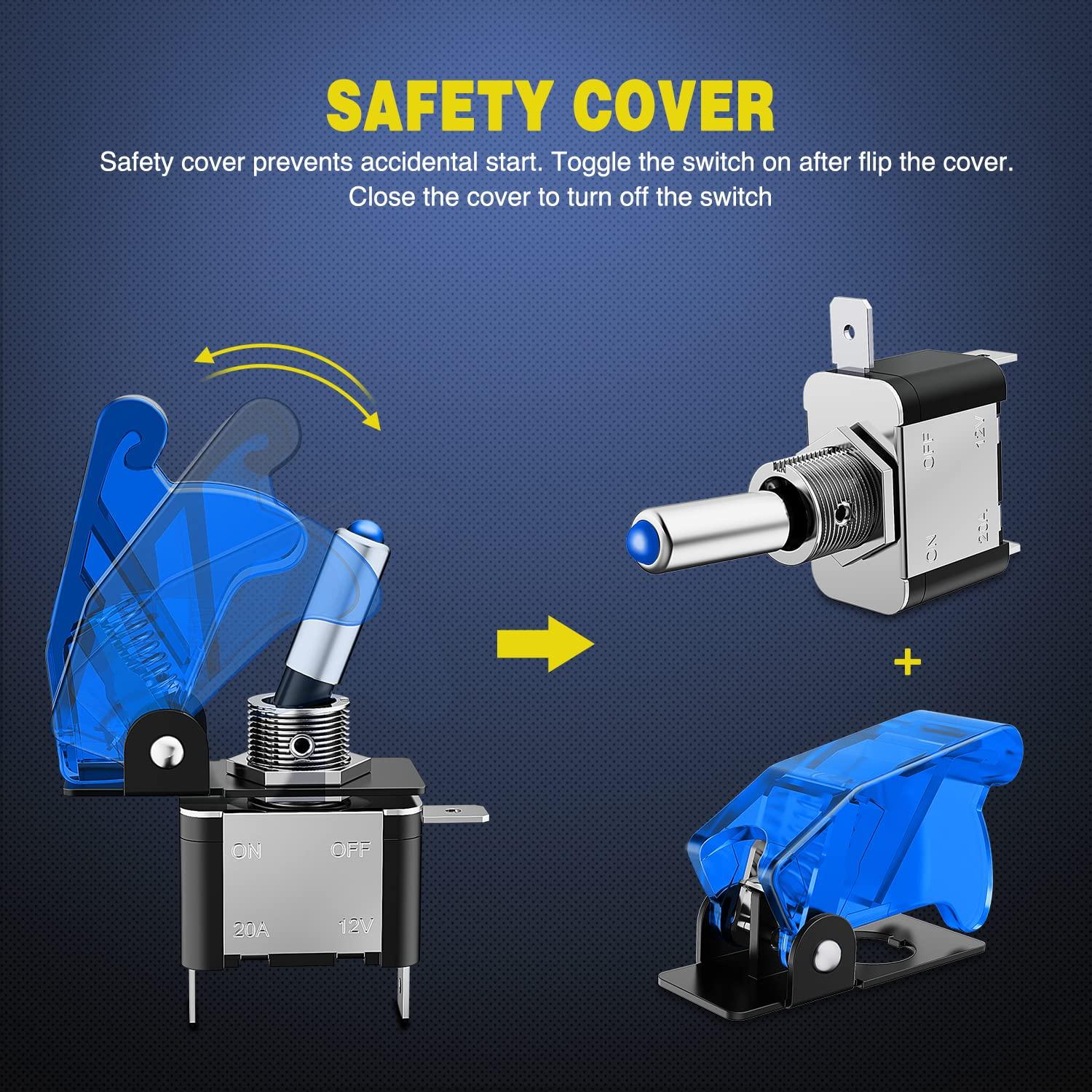 Nilight 5PCS LED Toggle Switch ON Off 12V Blue Lighted Aircraft Safety Cover Heavy Duty 20A SPST 3 Pin Rocker for Automotive Cars Trucks Boats Racing Cars,2 Years Warranty(5PCS Led Switch Blue)