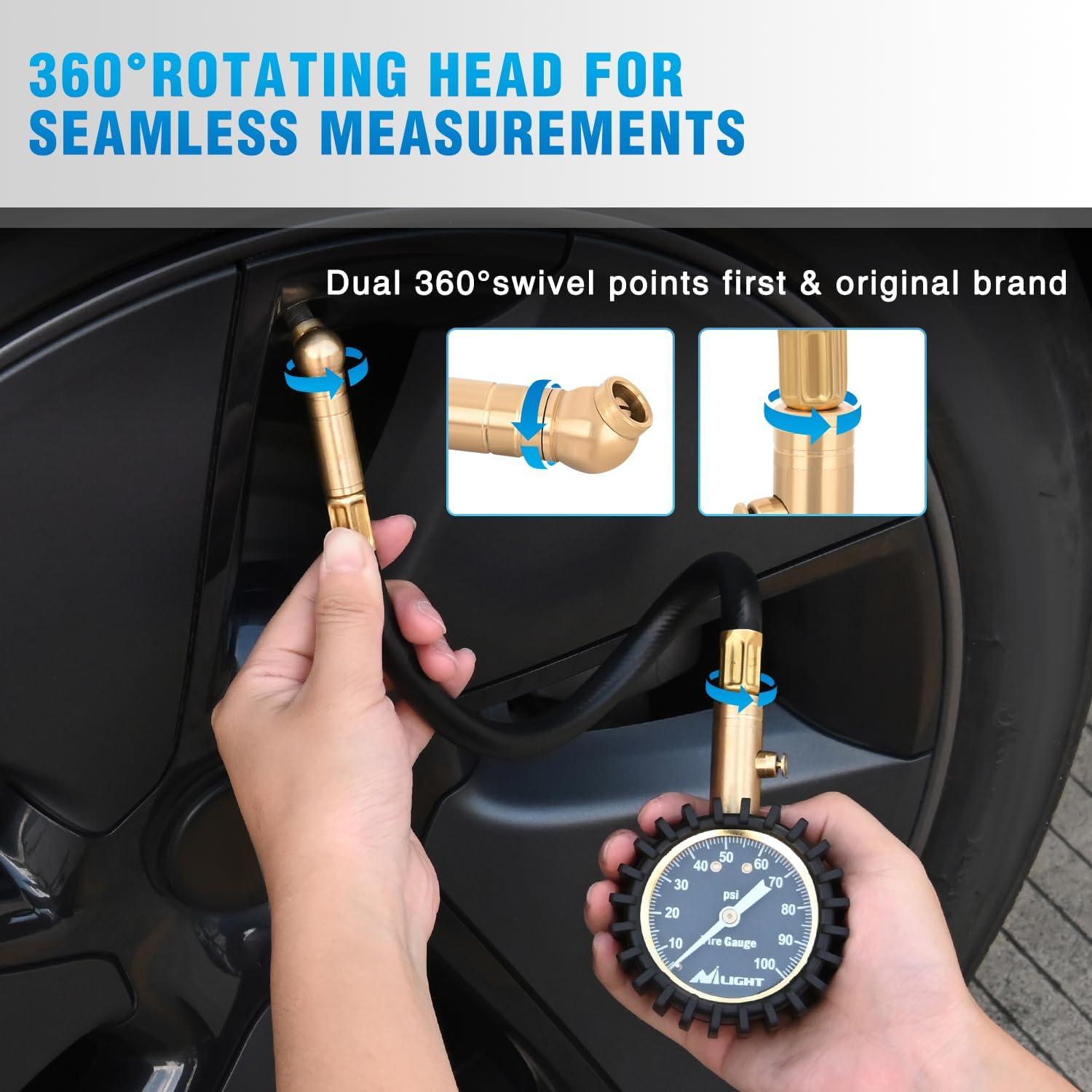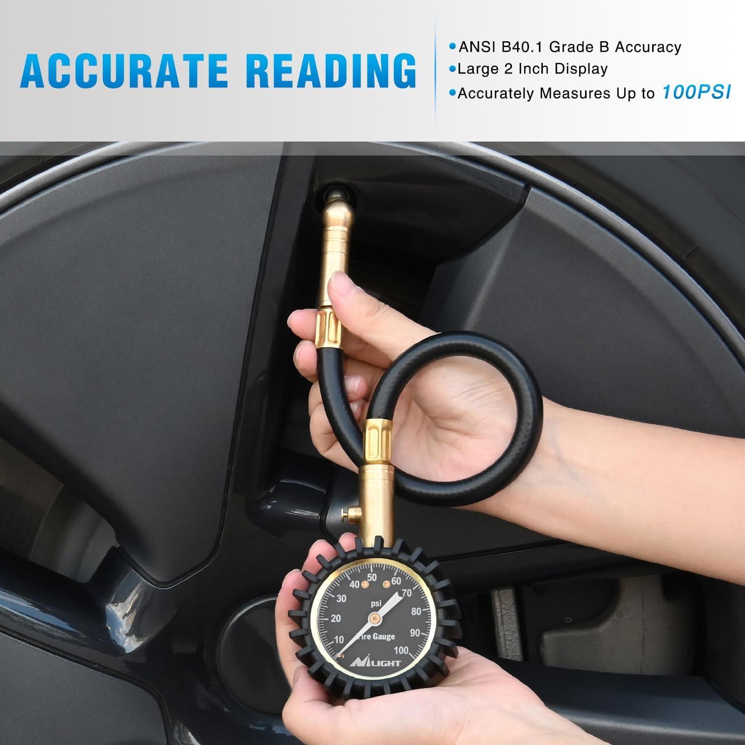 Nilight – 50057A Digital Tire Inflator Deflator with Pressure Gauge 250 PSI Air Chuck and Compressor Accessories with Rubber Hose and Quick Connect Coupler for 0.1 Display Resolution(Night Glow Tire Gauge)