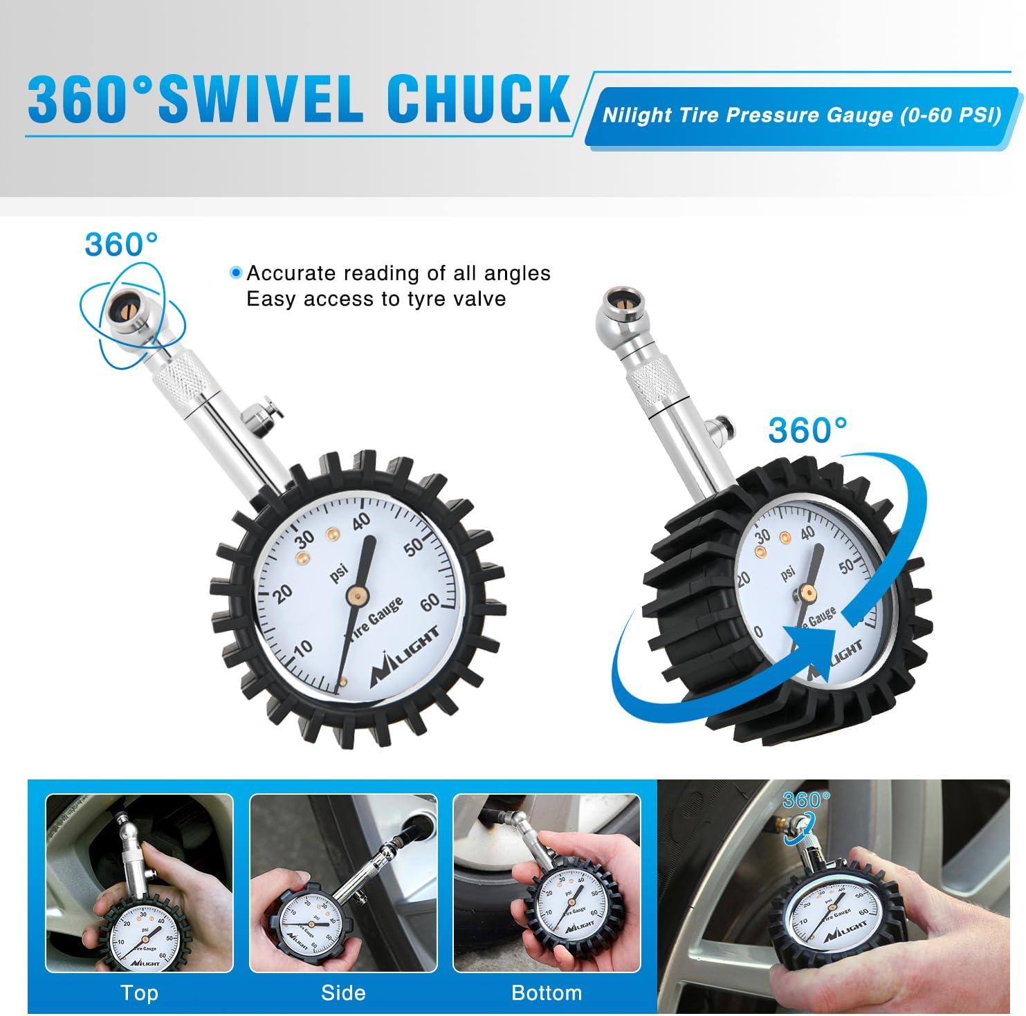 Nilight – 50057A Digital Tire Inflator Deflator with Pressure Gauge 250 PSI Air Chuck and Compressor Accessories with Rubber Hose and Quick Connect Coupler for 0.1 Display Resolution(60psi Tire Gauge)