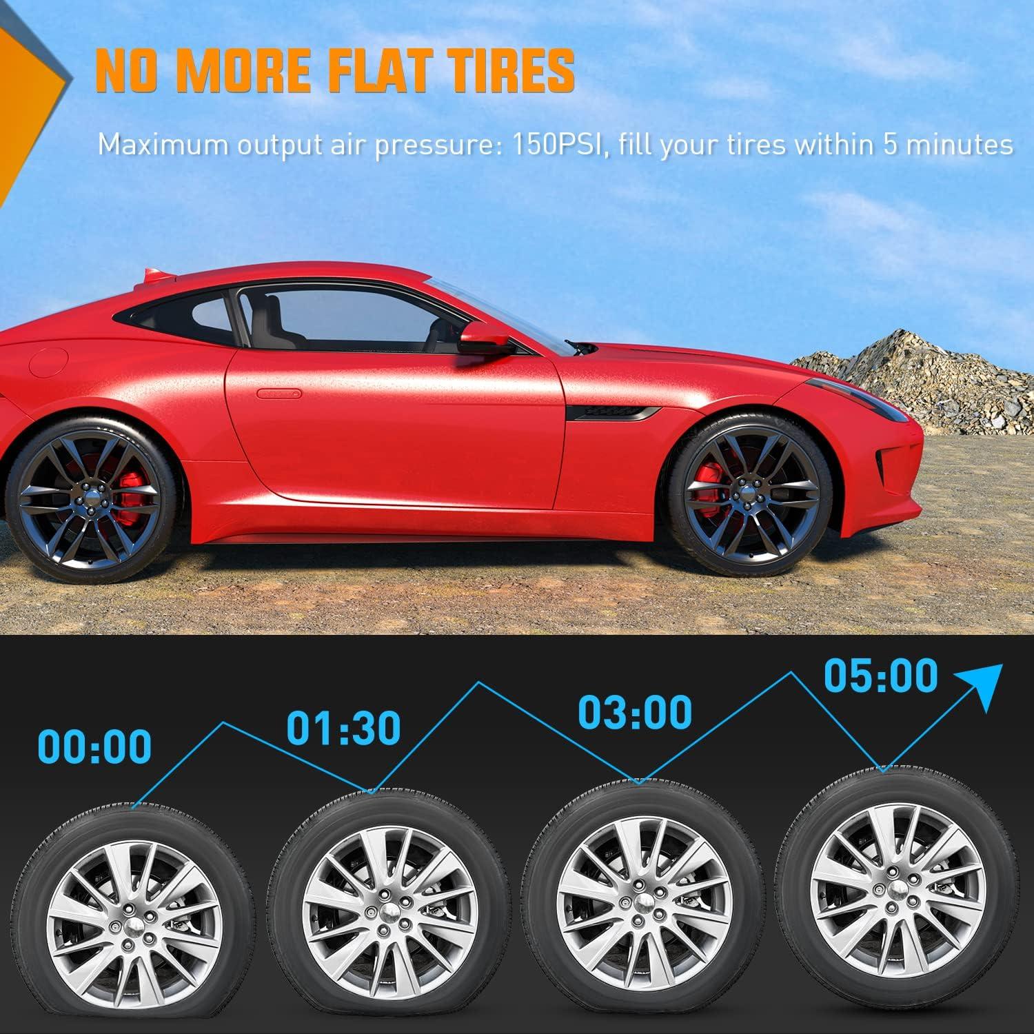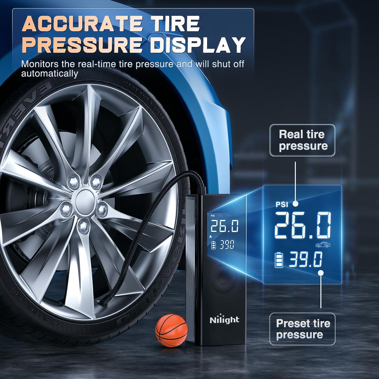 Nilight – 50057A Digital Tire Inflator Deflator with Pressure Gauge 250 PSI Air Chuck and Compressor Accessories with Rubber Hose and Quick Connect Coupler for 0.1 Display Resolution(Cordless Tire Inflator 150psi)