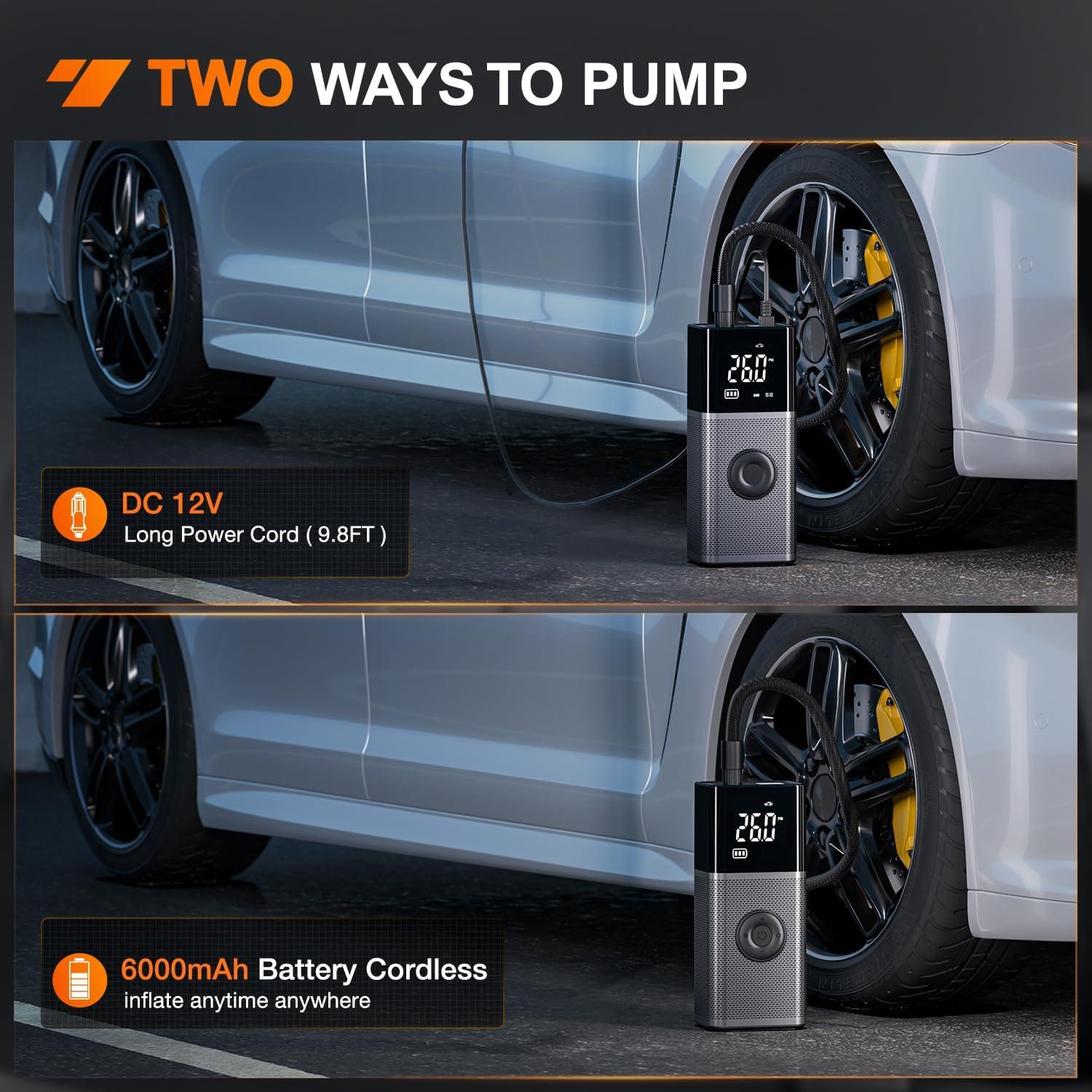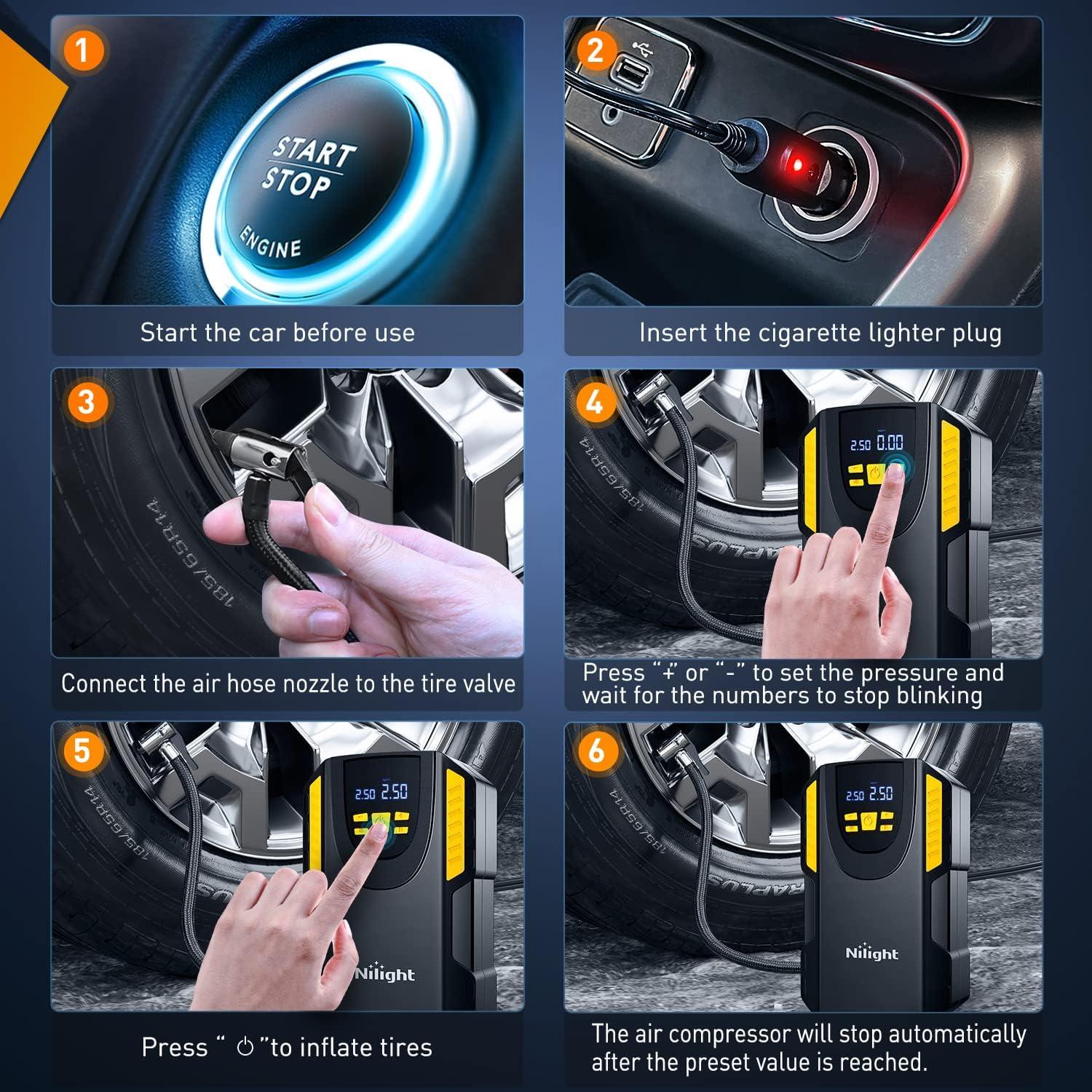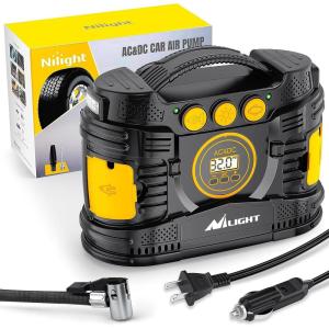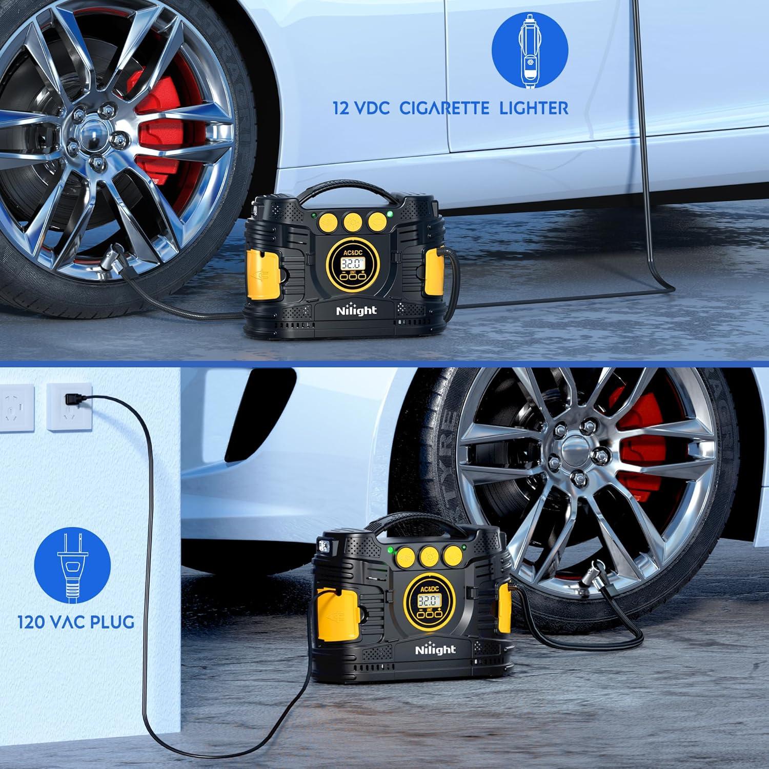 Nilight – 50057A Digital Tire Inflator Deflator with Pressure Gauge 250 PSI Air Chuck and Compressor Accessories with Rubber Hose and Quick Connect Coupler for 0.1 Display Resolution(Ac/Dc Air Compressor Pump +Battery)