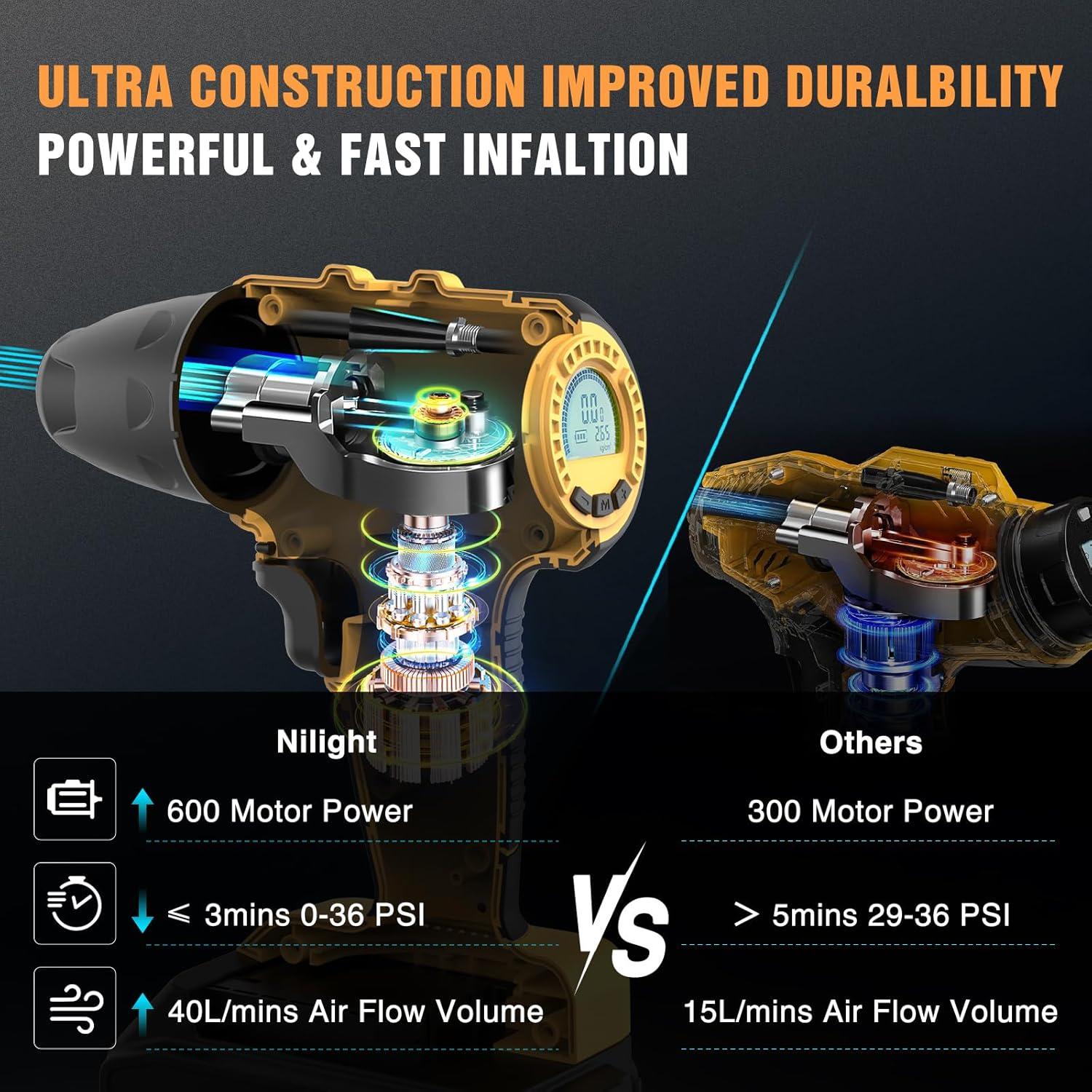 Nilight – 50057A Digital Tire Inflator Deflator with Pressure Gauge 250 PSI Air Chuck and Compressor Accessories with Rubber Hose and Quick Connect Coupler for 0.1 Display Resolution(Double Cylinder Air Compressor Pump)