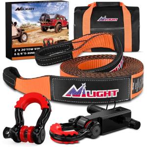 Nilight 10 Ton Winch Snatch Block Towing Pulley Blocks 22,000 LBS Capacity, Heavy Duty Off-Road Recovery Accessory for Synthetic Rope or Steel Cable, Universal Tackle Block for Truck, Tractor, ATV&UTV(20ft Tow Strap +D-Ring Shackle +Hitch)