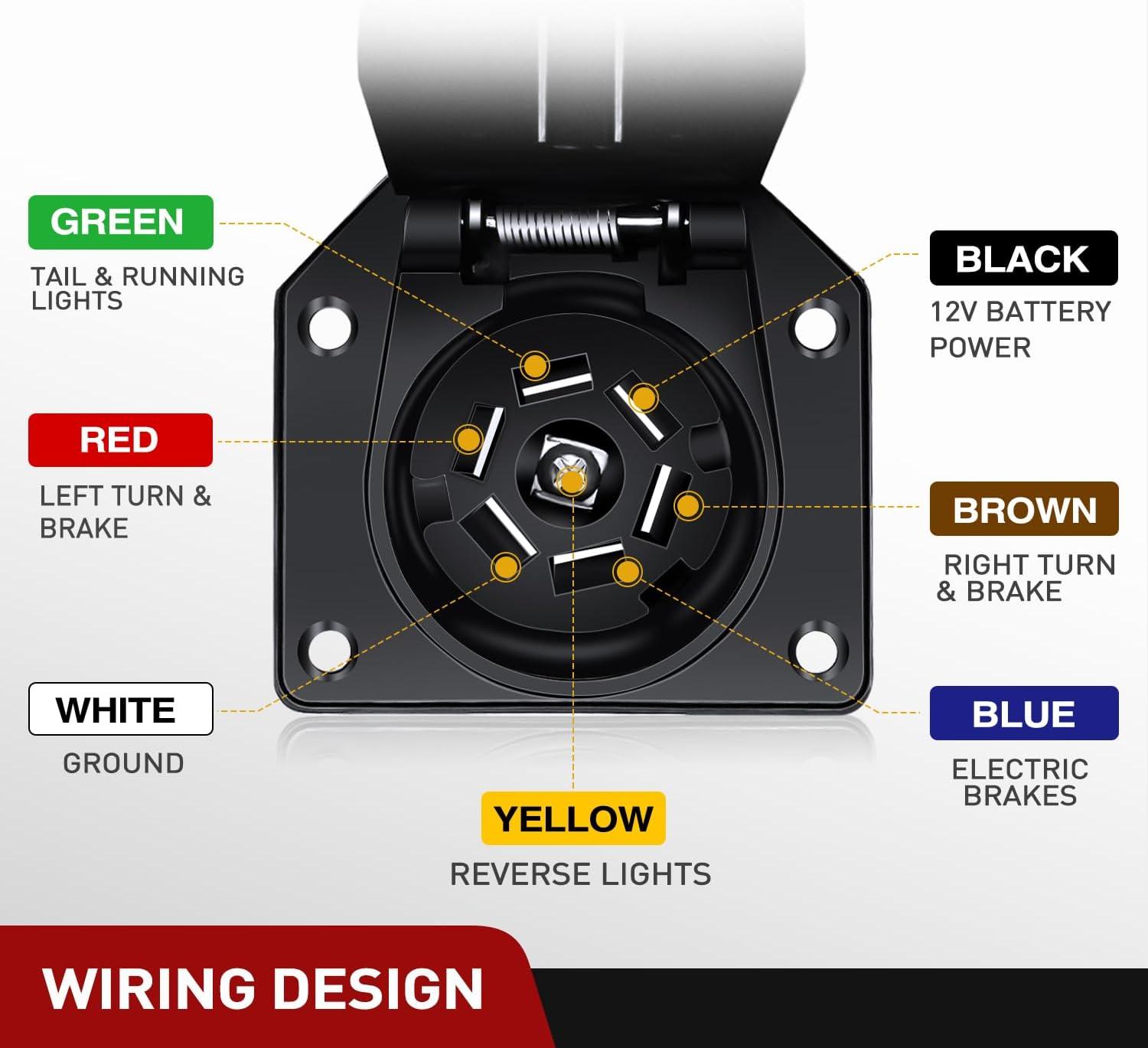 Nilight – 50050R 7-Way Trailer Plug Socket Extension Cable 3FT Long 10-14 AWG Double-Prong Copper Terminals/Wires for 7-Blade Trailer Wiring Connector Cord, 2 Years Warranty(8FT Trailer Extension Cord)