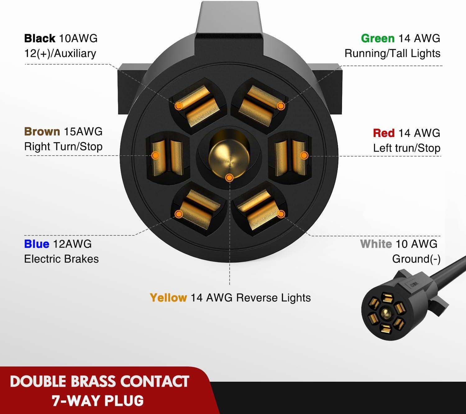 Nilight – 50050R 7-Way Trailer Plug Socket Extension Cable 3FT Long 10-14 AWG Double-Prong Copper Terminals/Wires for 7-Blade Trailer Wiring Connector Cord, 2 Years Warranty(12FT Trailer Extension Cord)