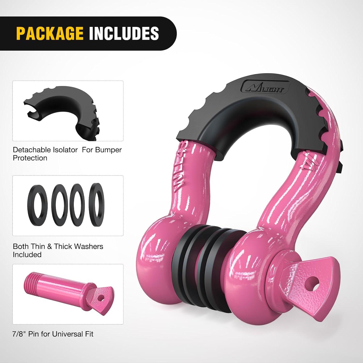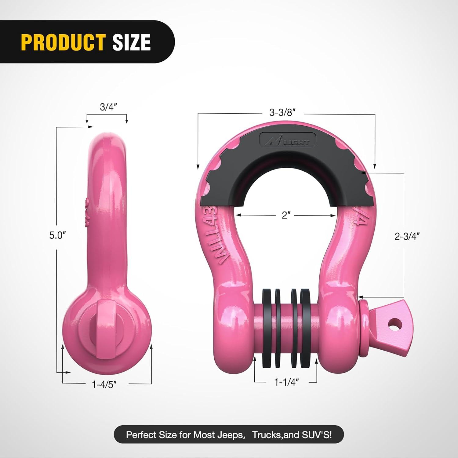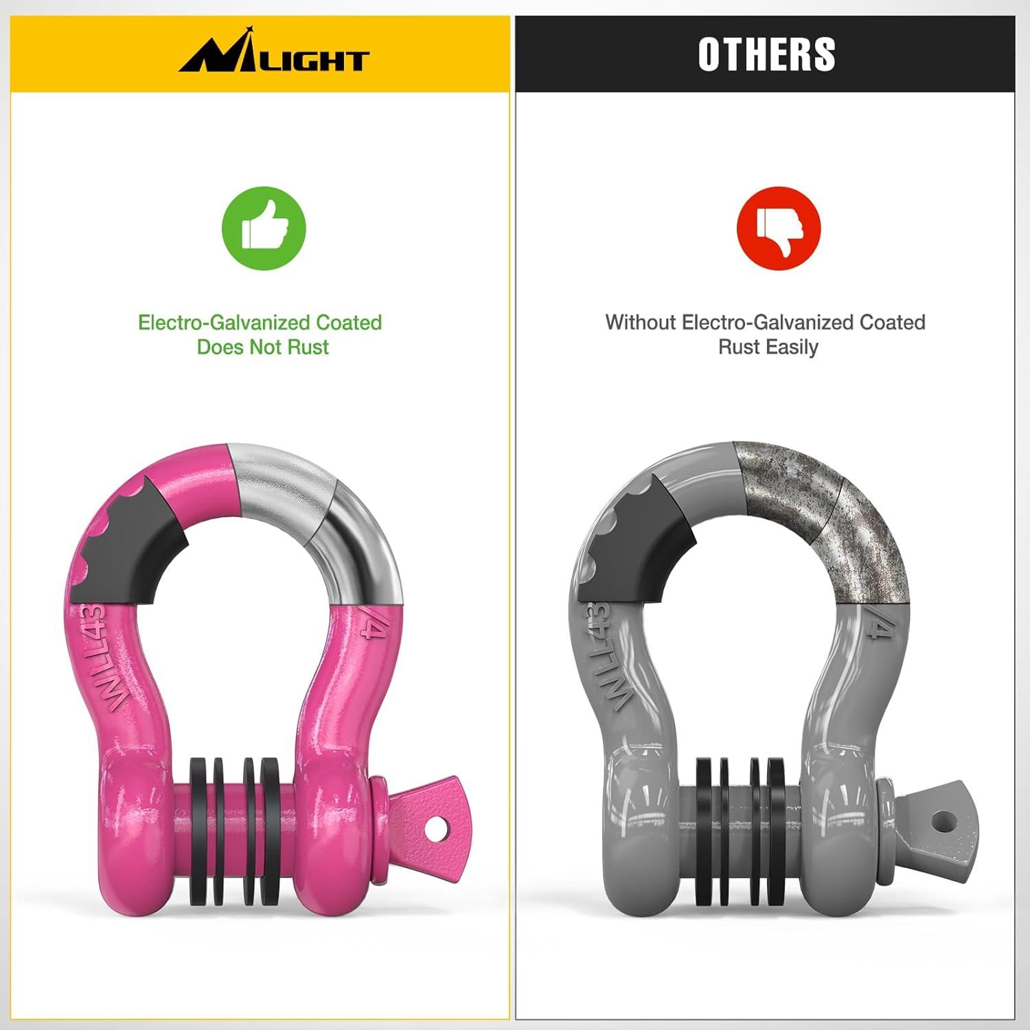 Nilight 2 Pack 3/4″ D-Ring Shackle with 7/8″ Screw Pin 41,887lbs Break Strength, Heavy Duty Off Road Recovery Shackle with Isolators Washers for Use with Tow Strap, Winch, Off-Road Jeep Truck Vehicle(Pink)