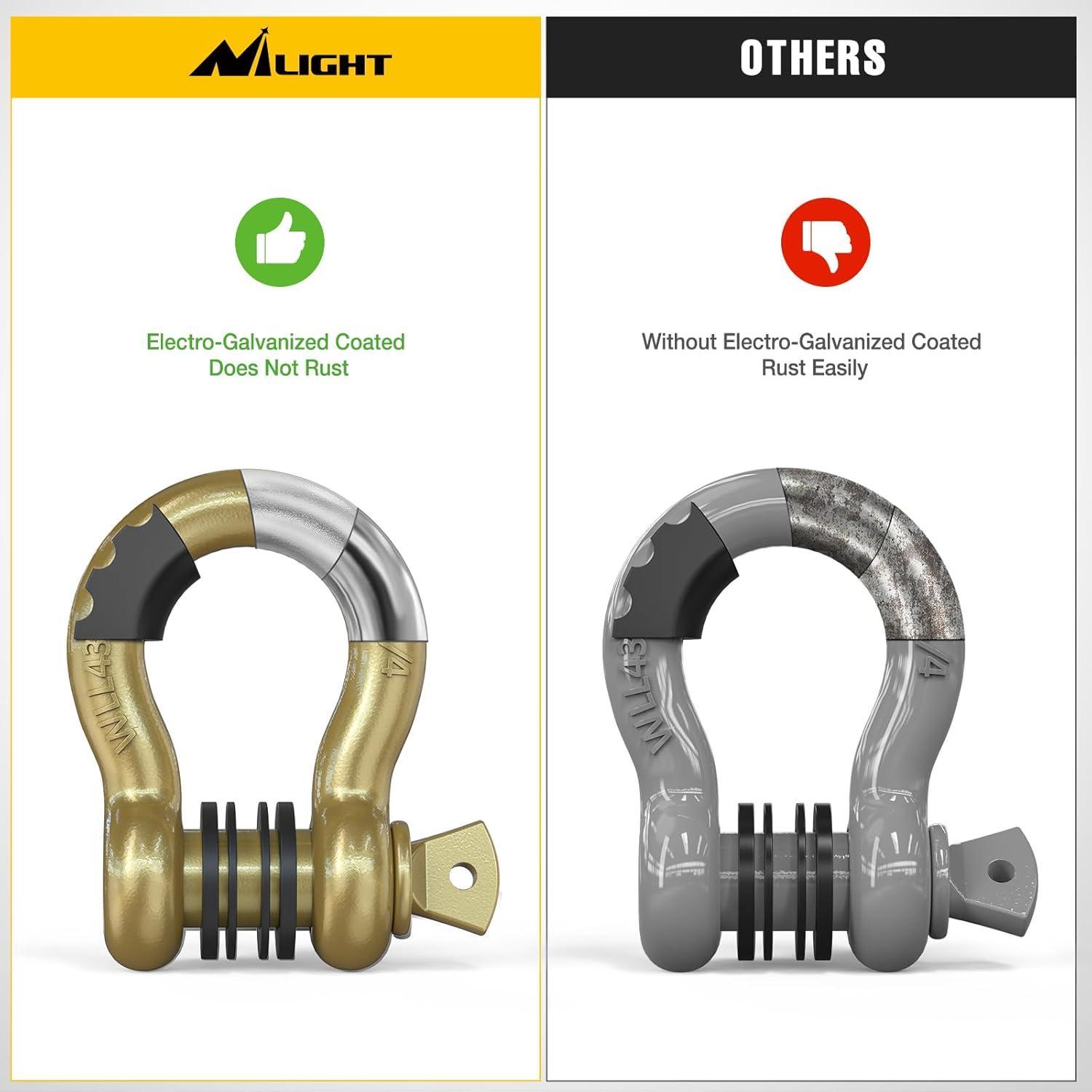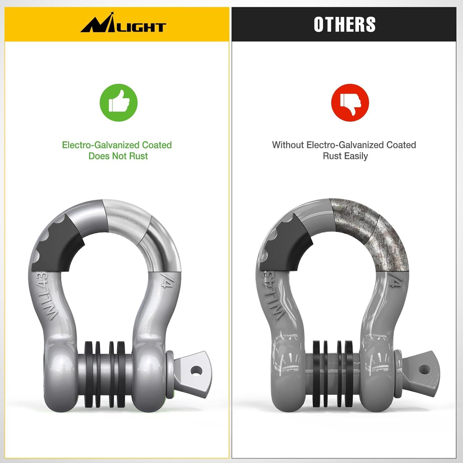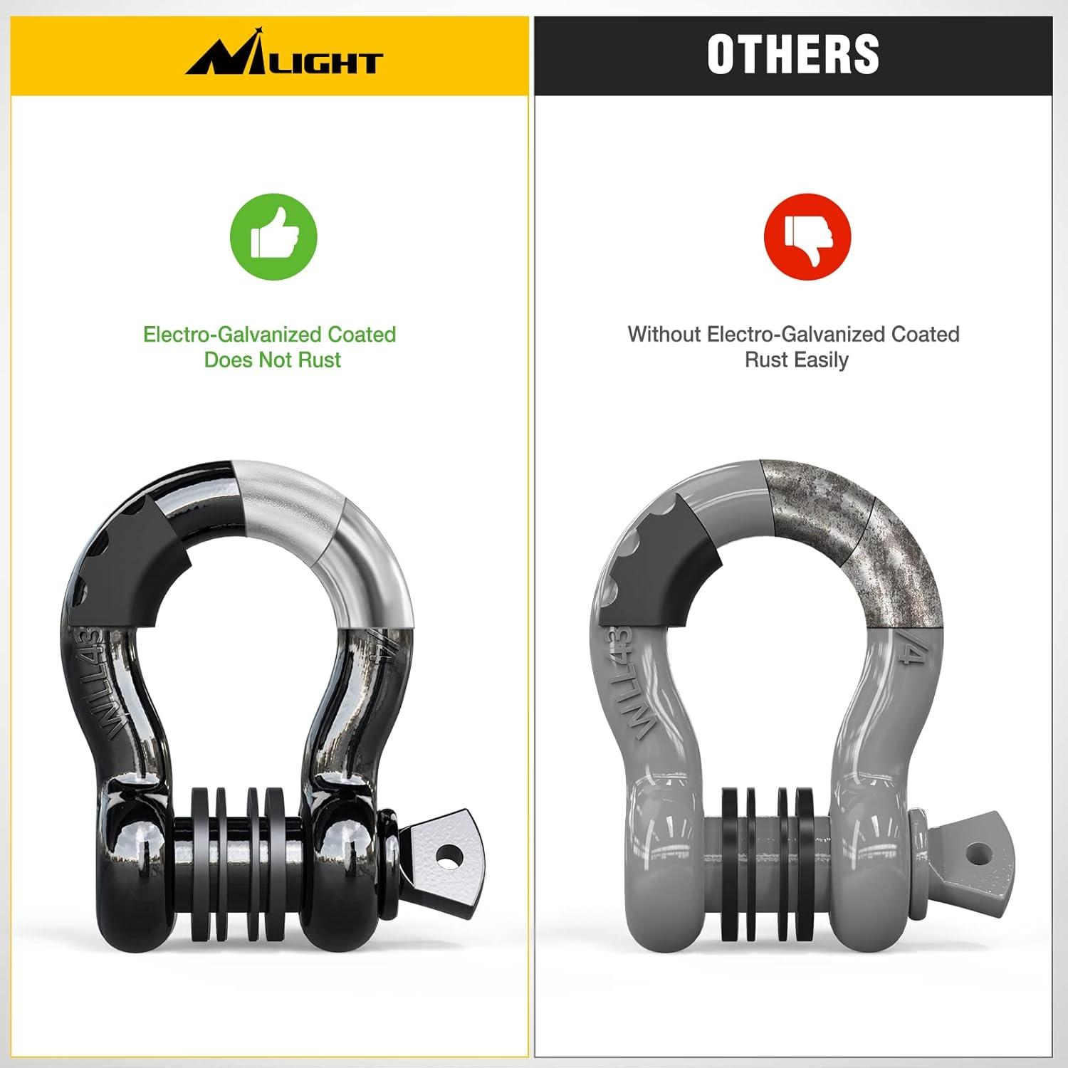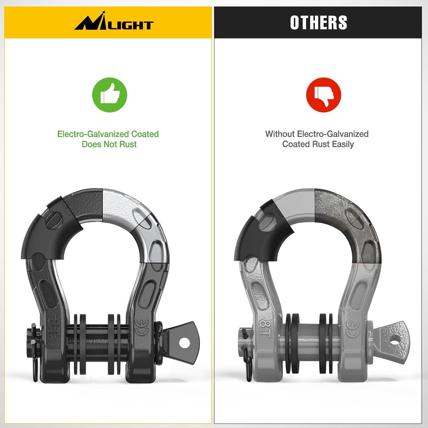 Nilight 2 Pack 3/4″ D-Ring Shackle with 7/8″ Screw Pin 41,887lbs Break Strength, Heavy Duty Off Road Recovery Shackle with Isolators Washers for Use with Tow Strap, Winch, Off-Road Jeep Truck Vehicle(5/8″ Shackles 4Pcs)