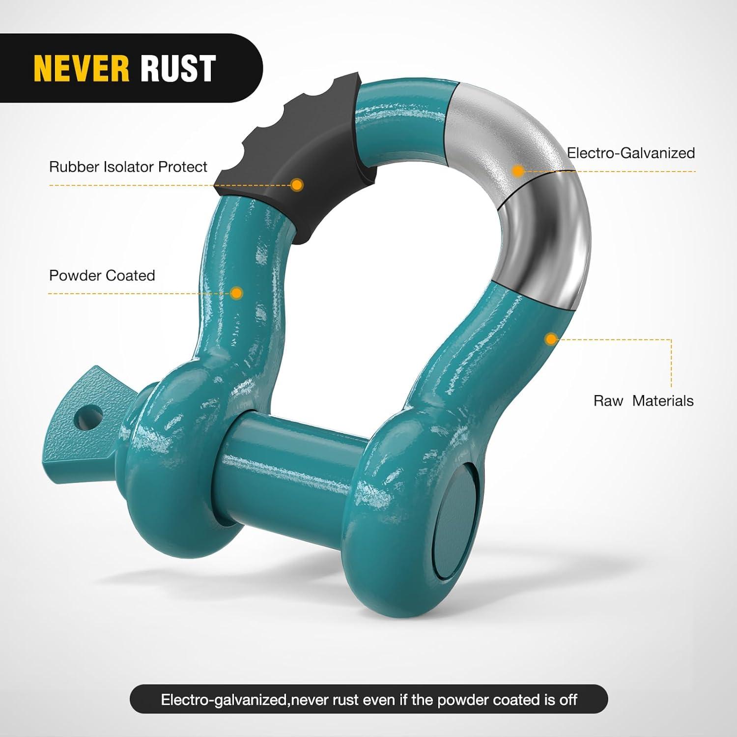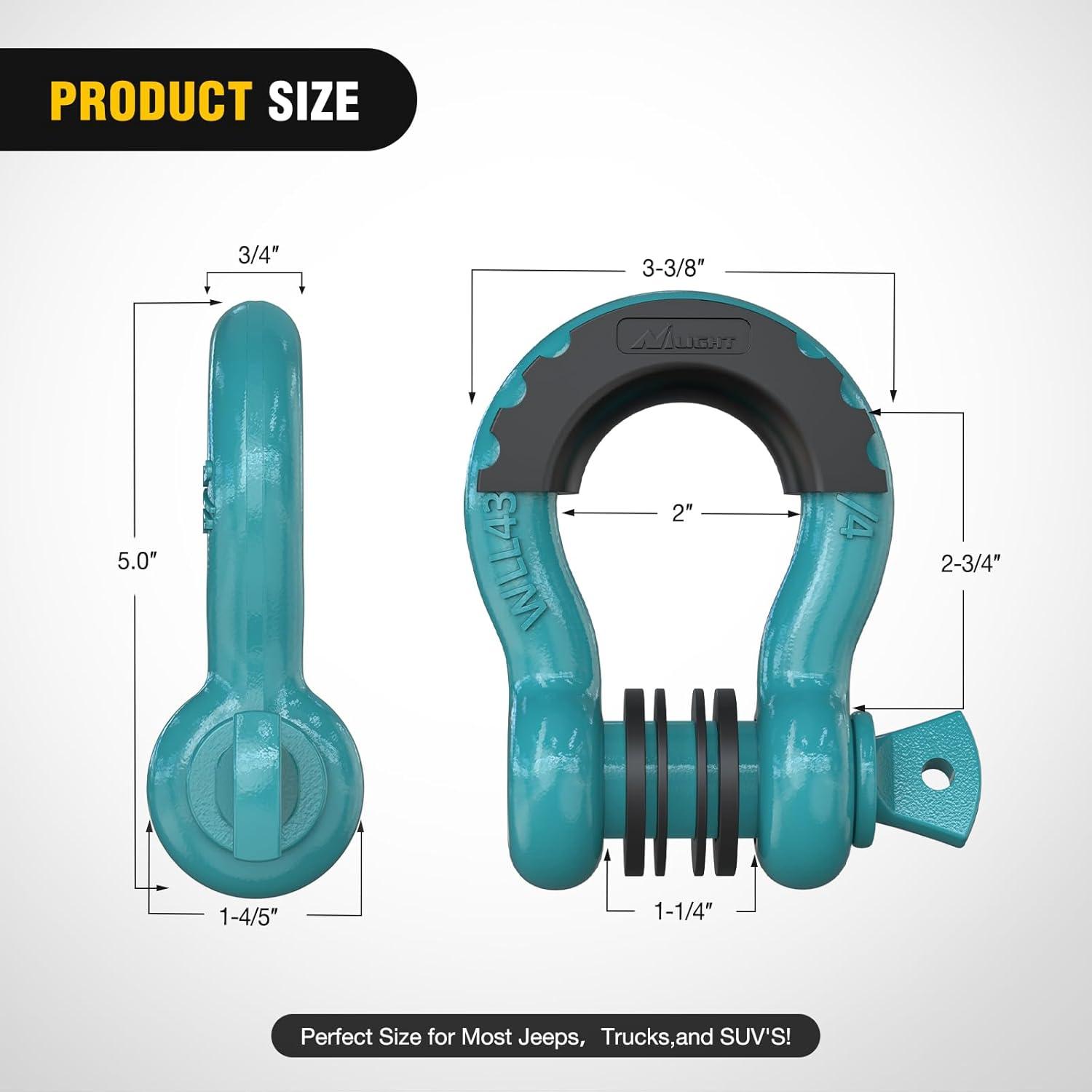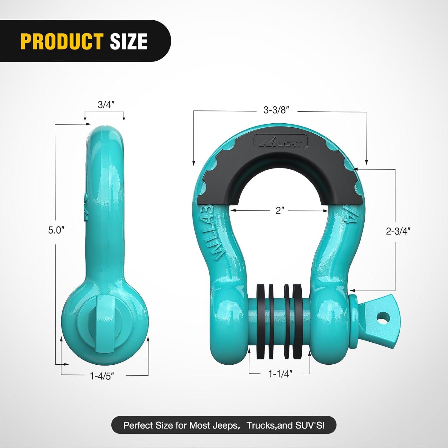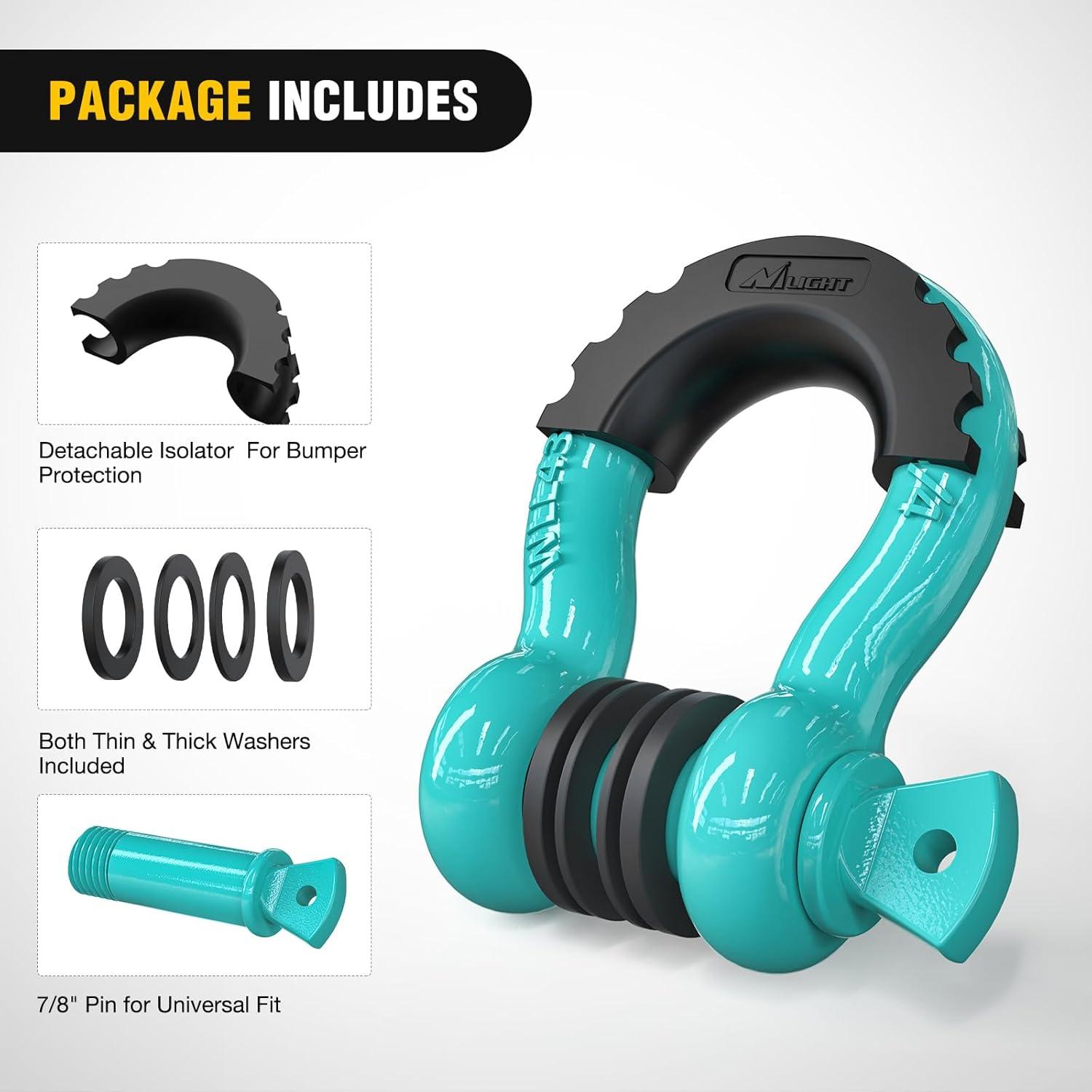 Nilight 2 Pack 3/4″ D-Ring Shackle with 7/8″ Screw Pin 41,887lbs Break Strength, Heavy Duty Off Road Recovery Shackle with Isolators Washers for Use with Tow Strap, Winch, Off-Road Jeep Truck Vehicle(Turquoise Green)
