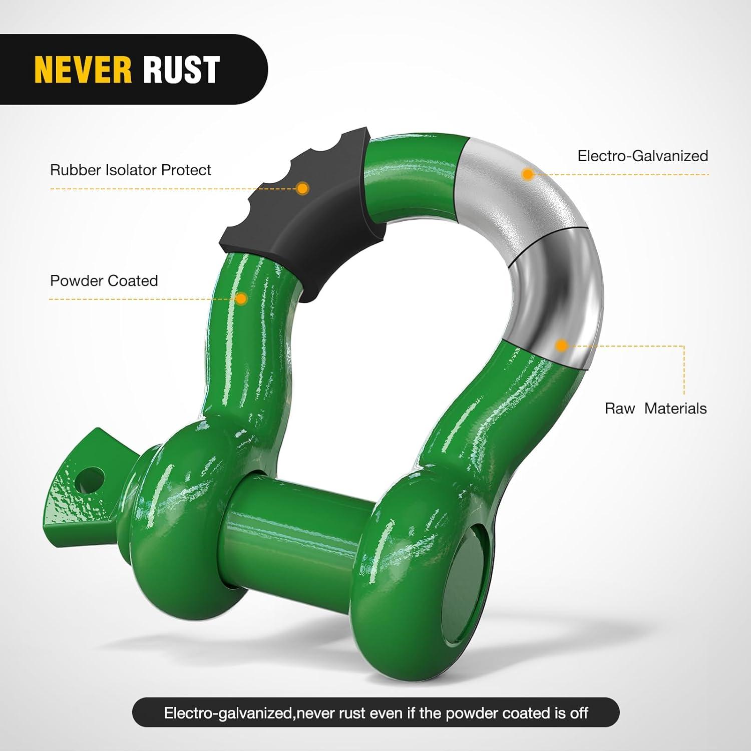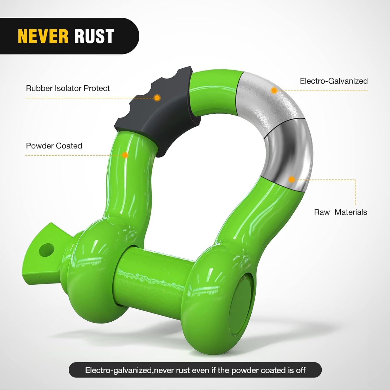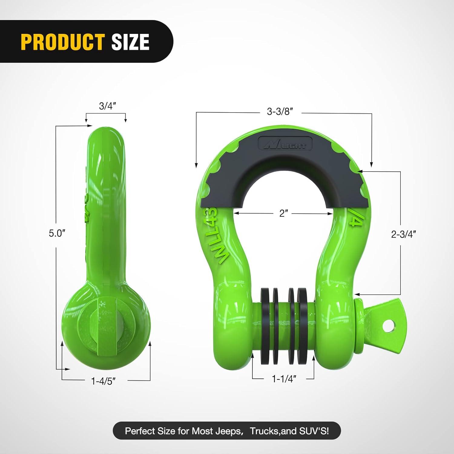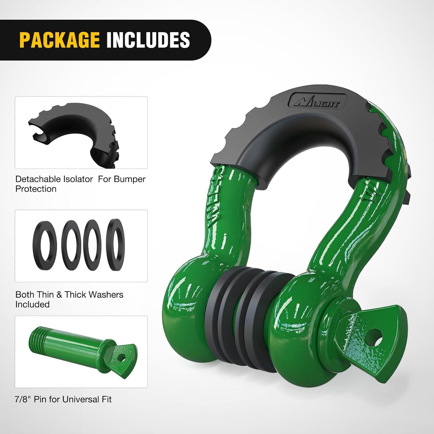 Nilight 2 Pack 3/4″ D-Ring Shackle with 7/8″ Screw Pin 41,887lbs Break Strength, Heavy Duty Off Road Recovery Shackle with Isolators Washers for Use with Tow Strap, Winch, Off-Road Jeep Truck Vehicle(Green-31 Ton)
