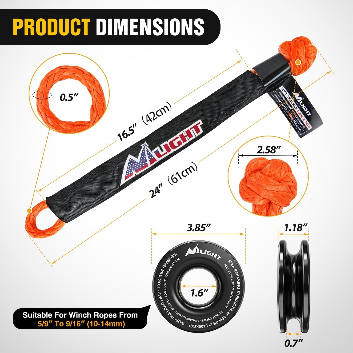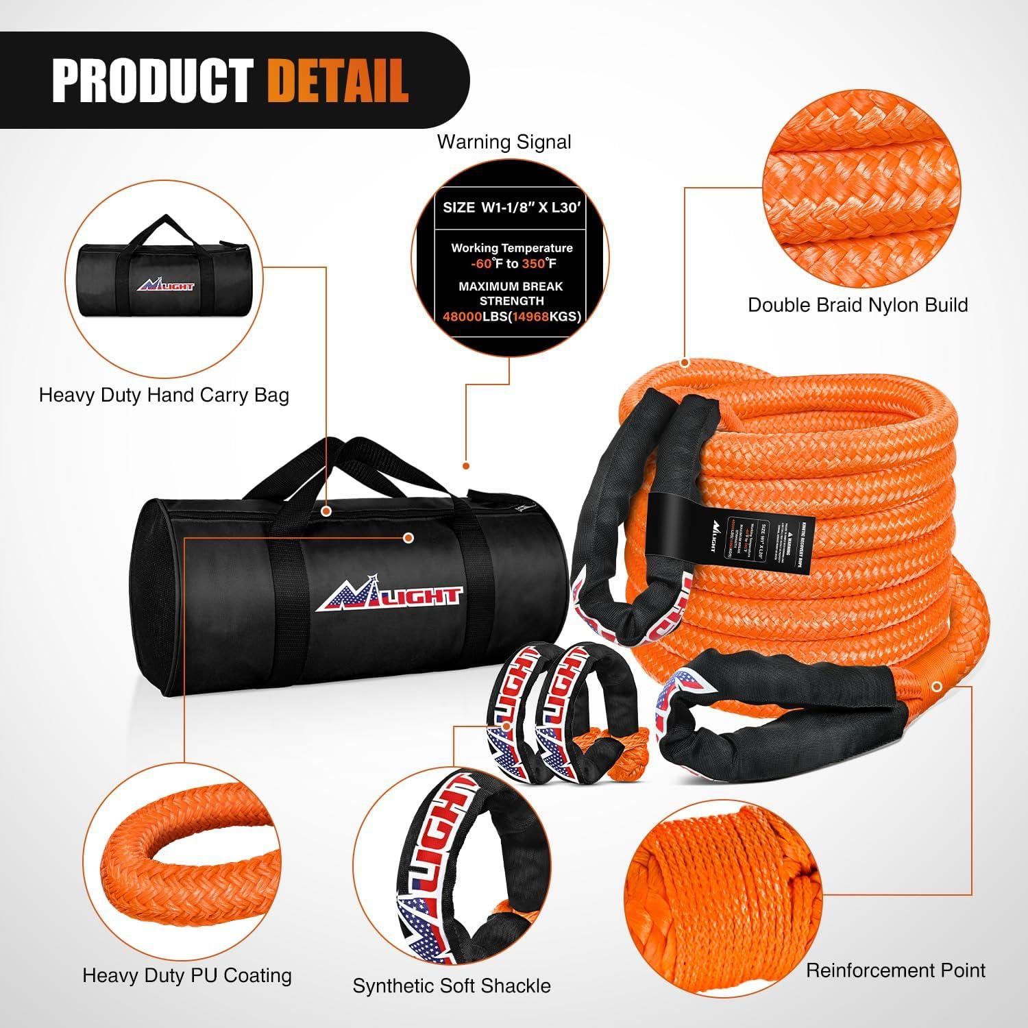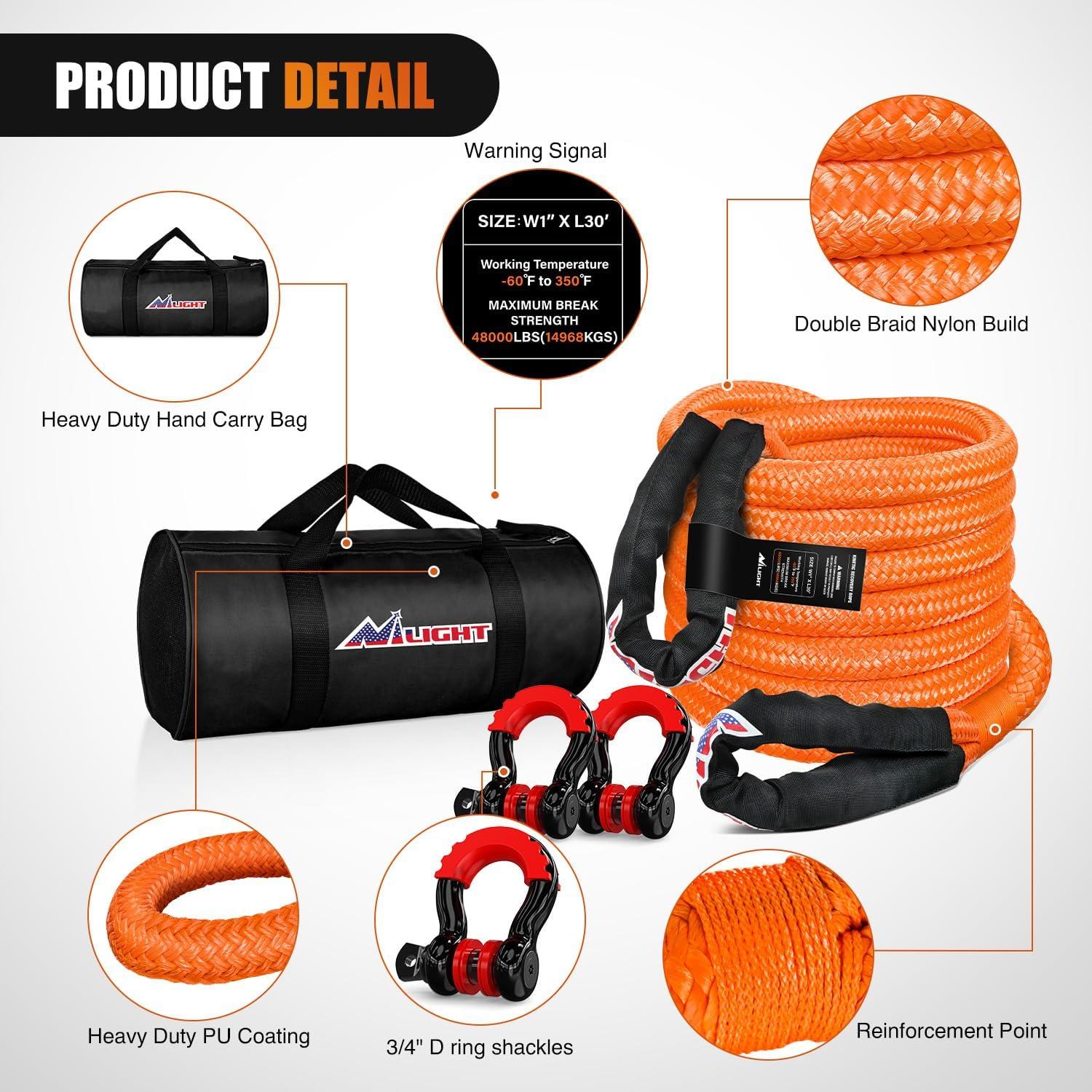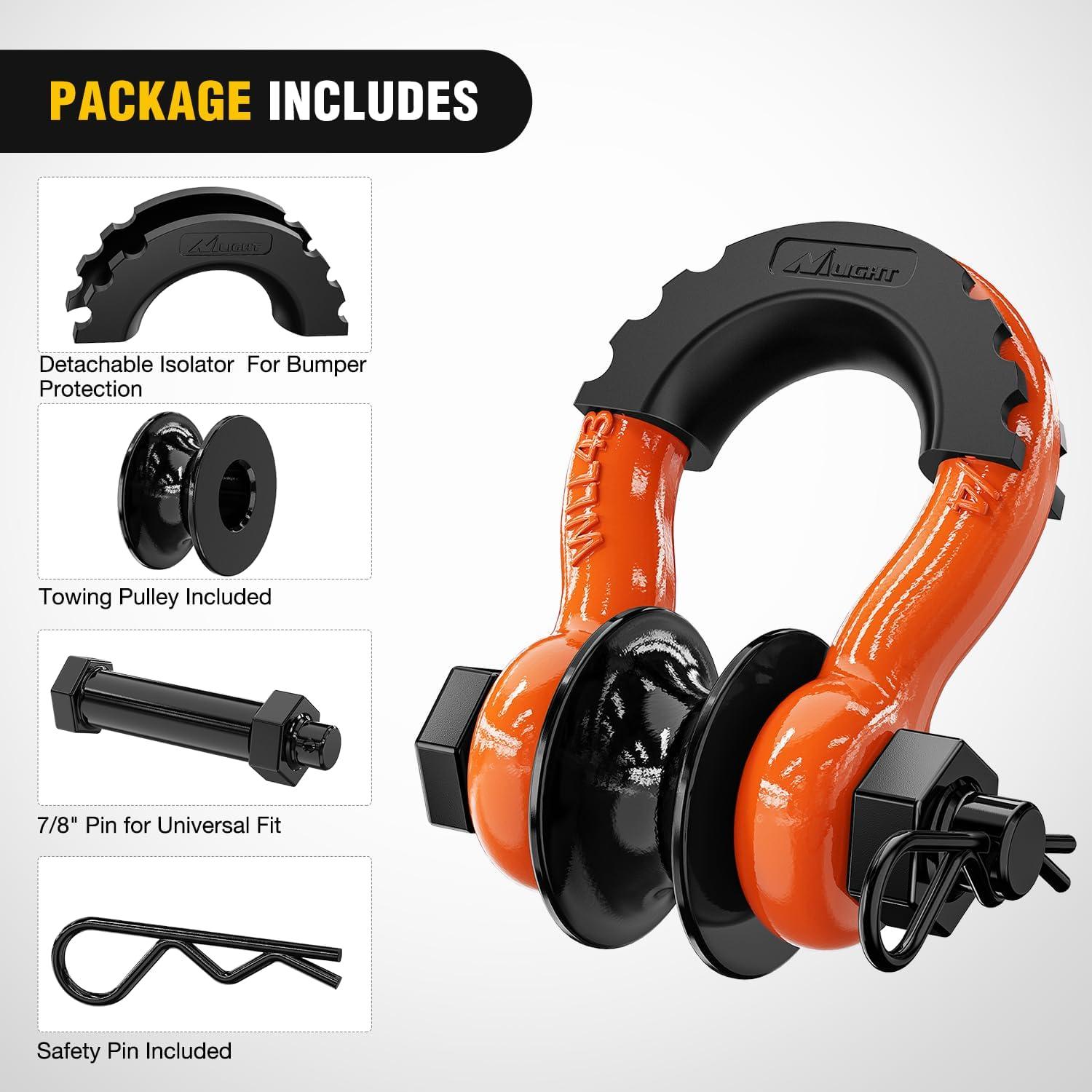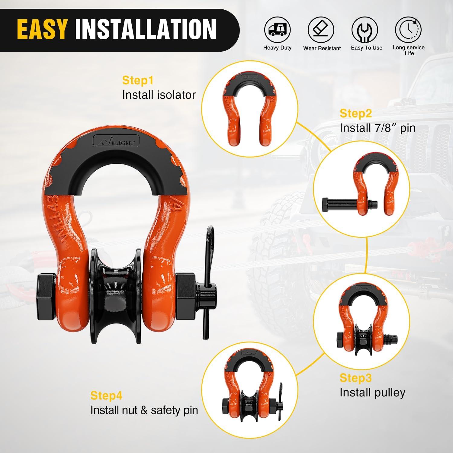 Nilight 2 Pack 3/4″ D-Ring Shackle with 7/8″ Screw Pin 41,887lbs Break Strength, Heavy Duty Off Road Recovery Shackle with Isolators Washers for Use with Tow Strap, Winch, Off-Road Jeep Truck Vehicle(Orange w/Towing Pulley)