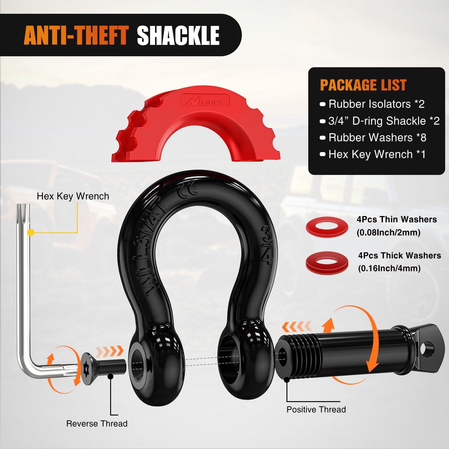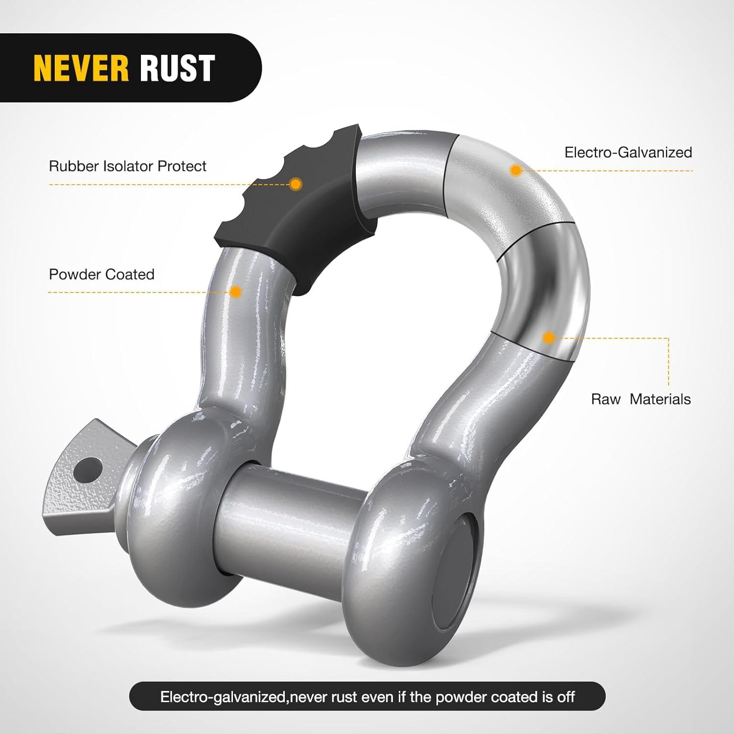 Nilight 2 Pack 3/4″ D-Ring Shackle with 7/8″ Screw Pin 41,887lbs Break Strength, Heavy Duty Off Road Recovery Shackle with Isolators Washers for Use with Tow Strap, Winch, Off-Road Jeep Truck Vehicle(1/2″ Shackles 4Pcs)