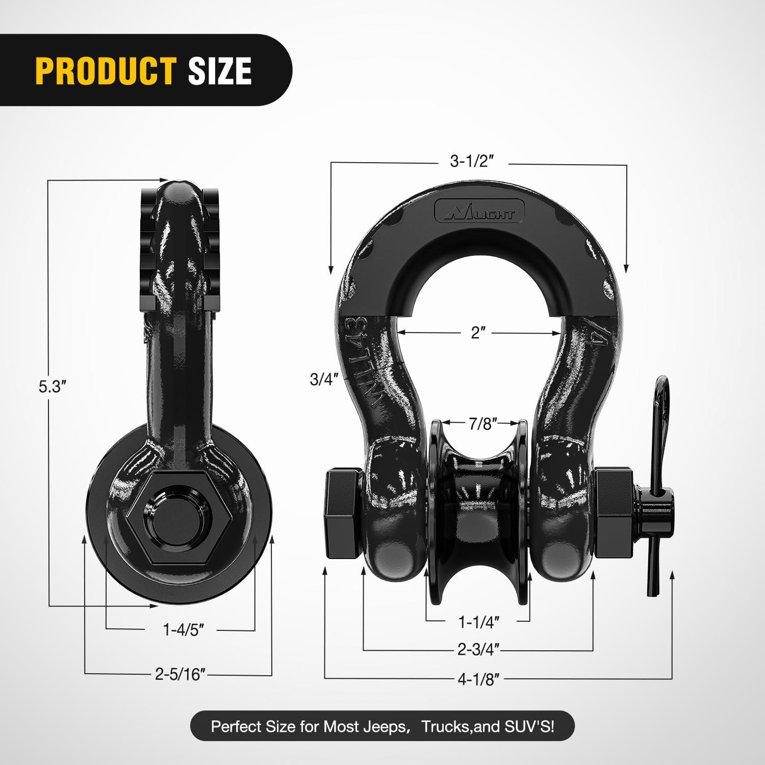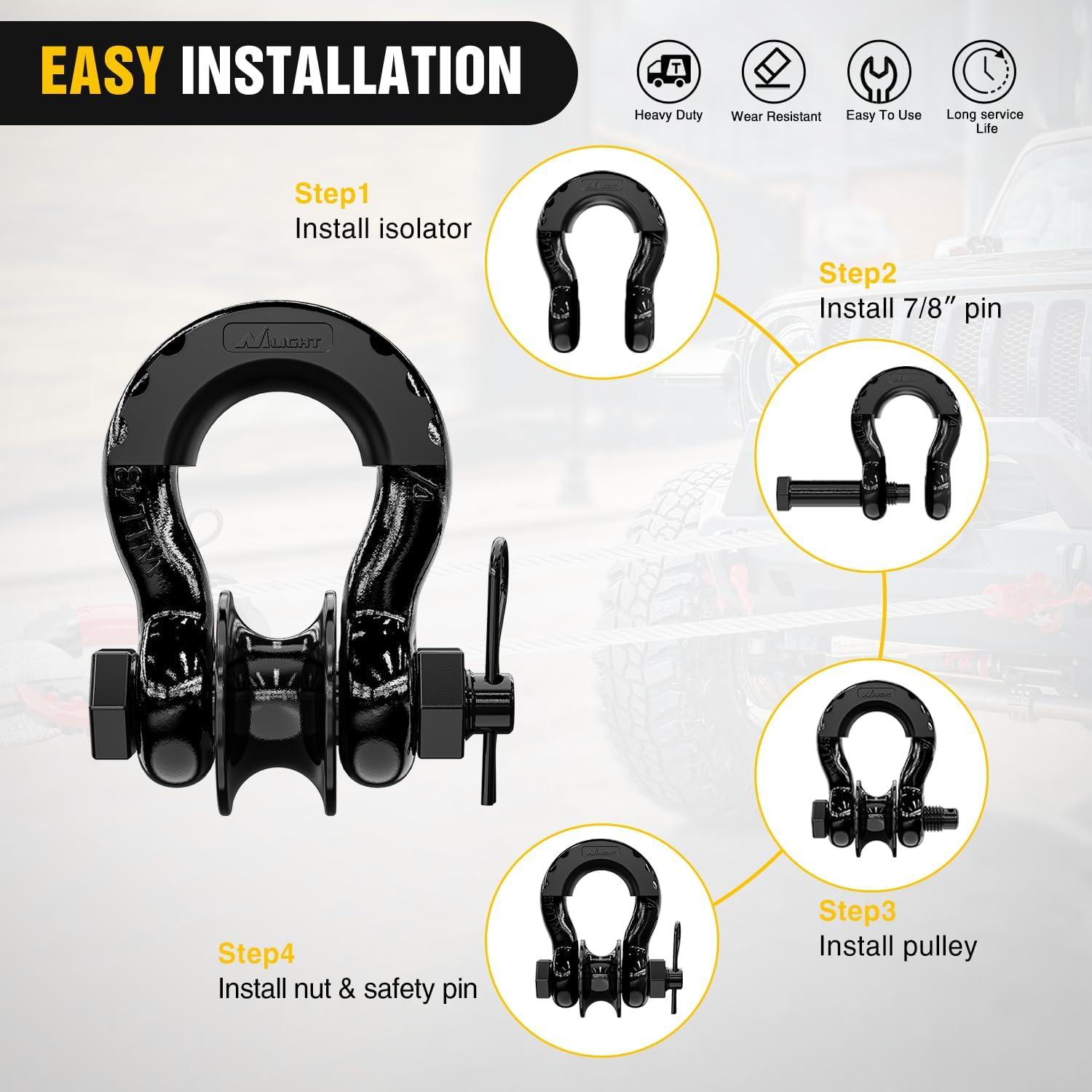 Nilight 2 Pack 3/4″ D-Ring Shackle with 7/8″ Screw Pin 41,887lbs Break Strength, Heavy Duty Off Road Recovery Shackle with Isolators Washers for Use with Tow Strap, Winch, Off-Road Jeep Truck Vehicle(Black w/Towing Pulley)