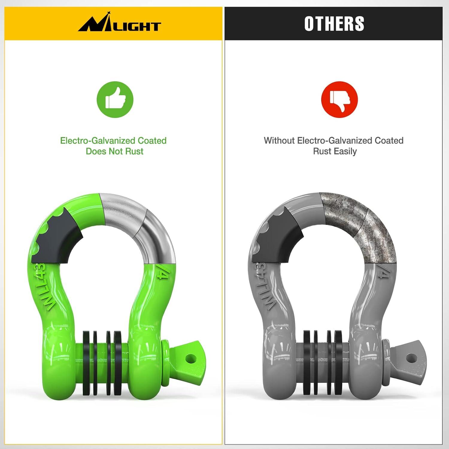 Nilight 2 Pack 3/4″ D-Ring Shackle with 7/8″ Screw Pin 41,887lbs Break Strength, Heavy Duty Off Road Recovery Shackle with Isolators Washers for Use with Tow Strap, Winch, Off-Road Jeep Truck Vehicle(Green)