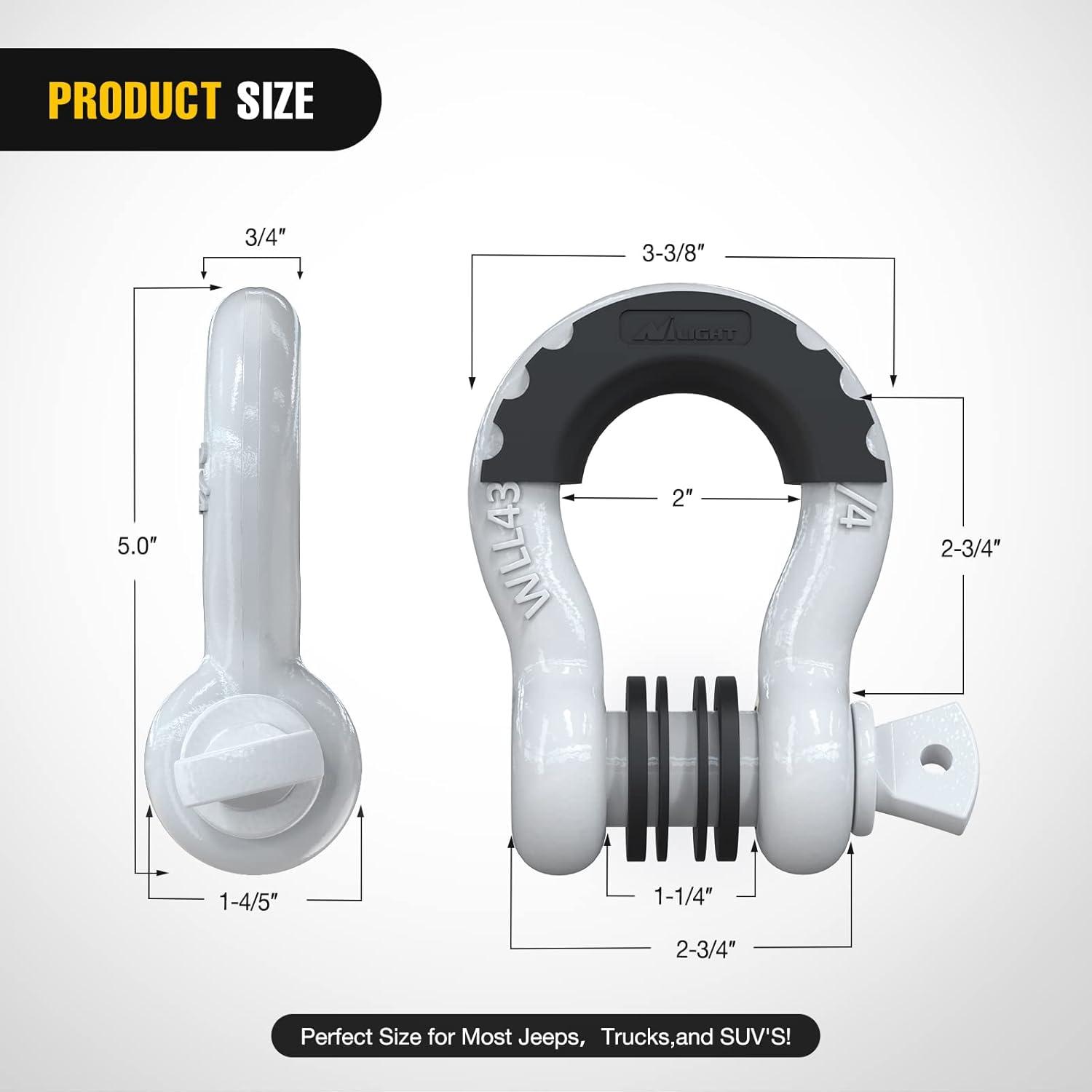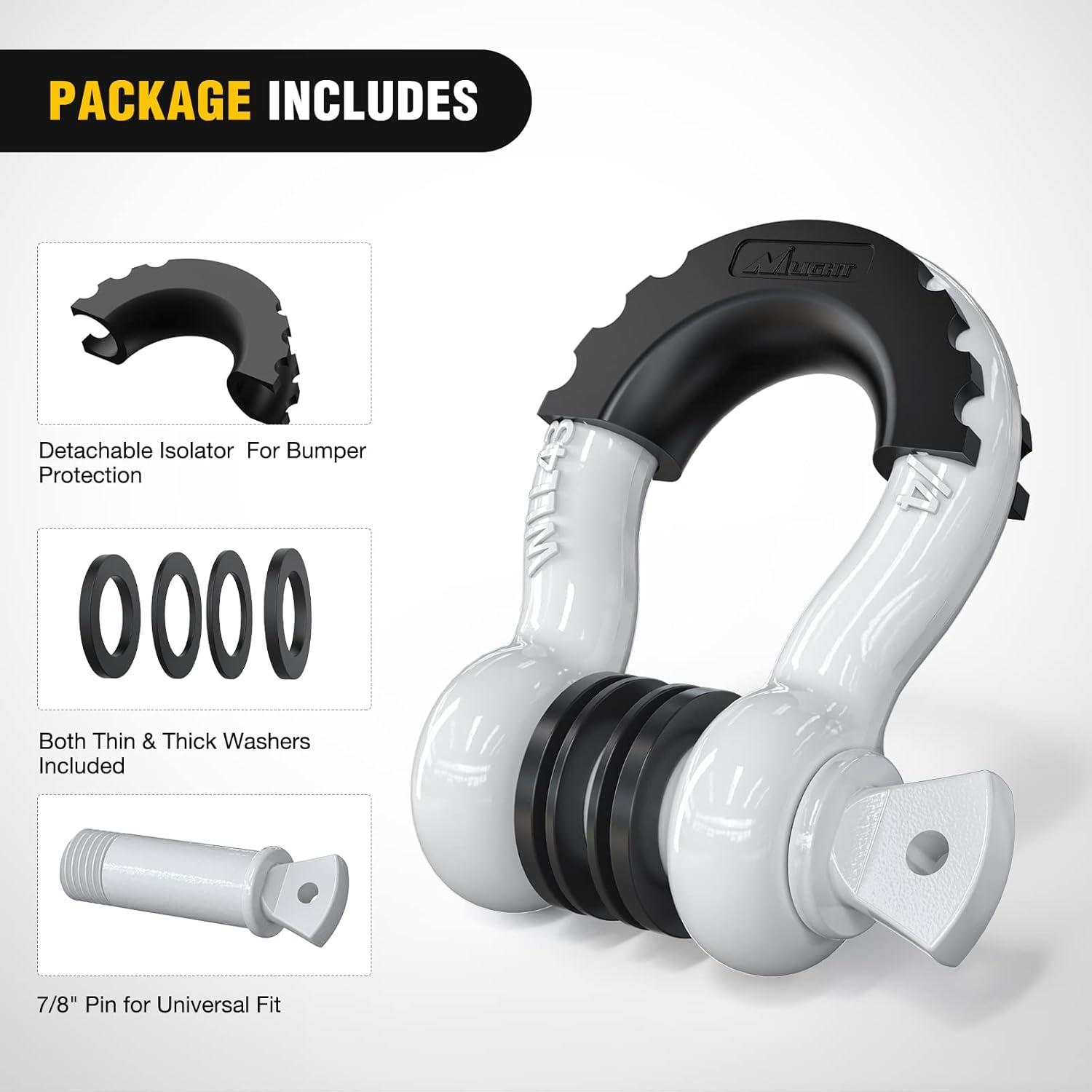 Nilight 2 Pack 3/4″ D-Ring Shackle with 7/8″ Screw Pin 41,887lbs Break Strength, Heavy Duty Off Road Recovery Shackle with Isolators Washers for Use with Tow Strap, Winch, Off-Road Jeep Truck Vehicle(White)