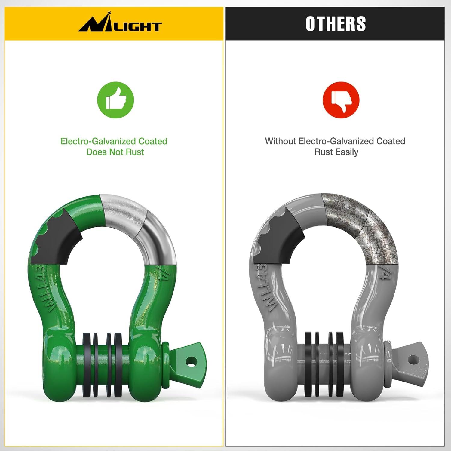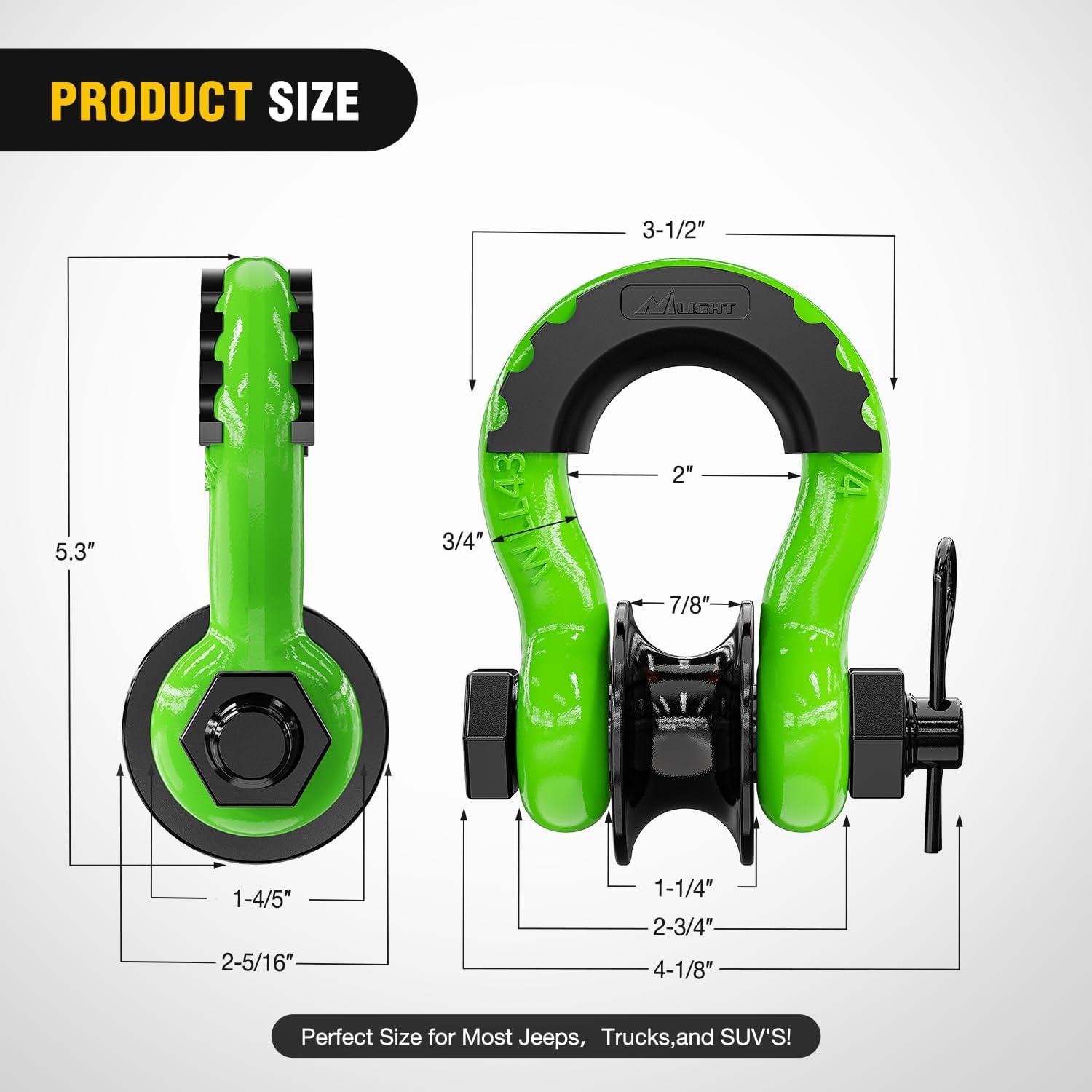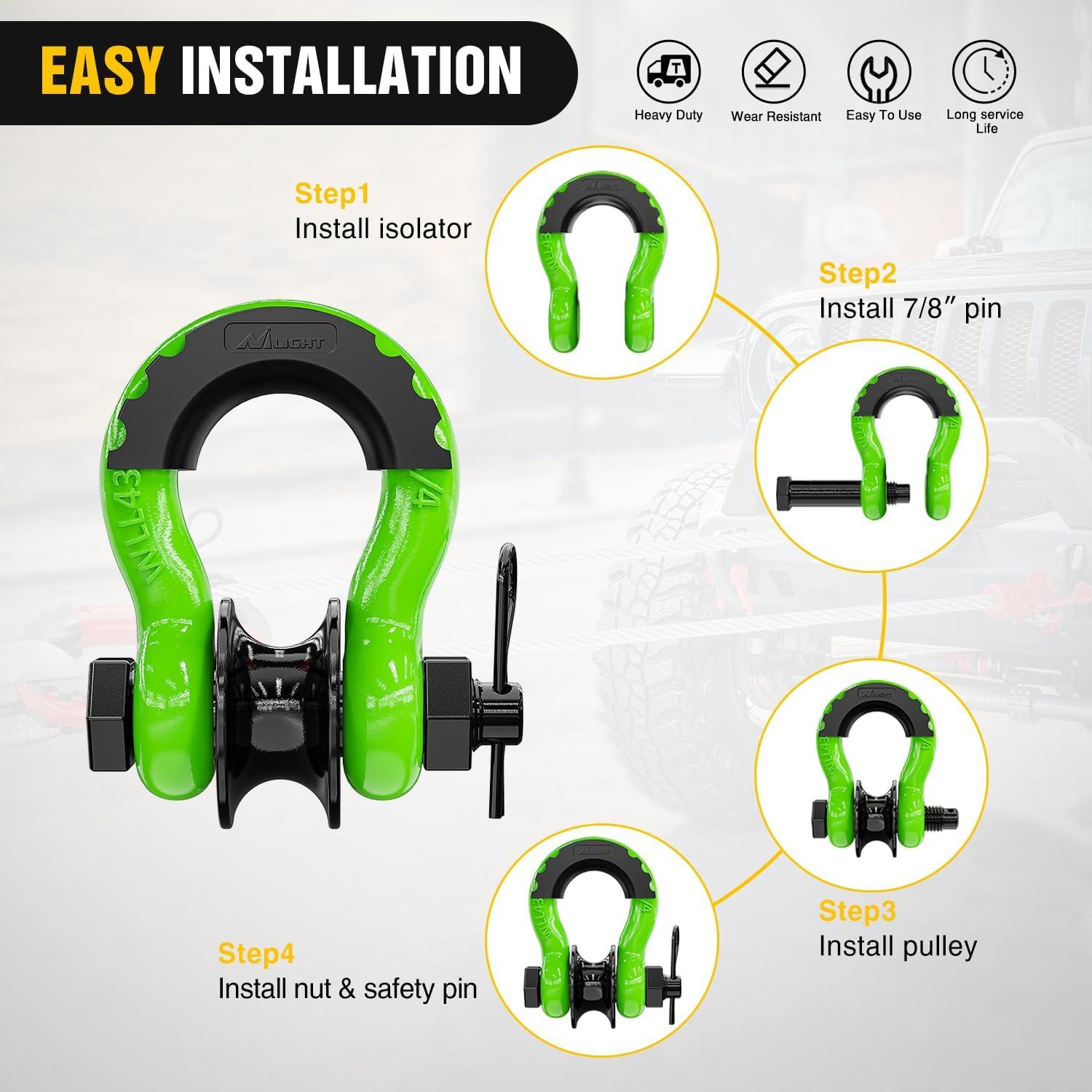 Nilight 2 Pack 3/4″ D-Ring Shackle with 7/8″ Screw Pin 41,887lbs Break Strength, Heavy Duty Off Road Recovery Shackle with Isolators Washers for Use with Tow Strap, Winch, Off-Road Jeep Truck Vehicle(Green w/Towing Pulley)