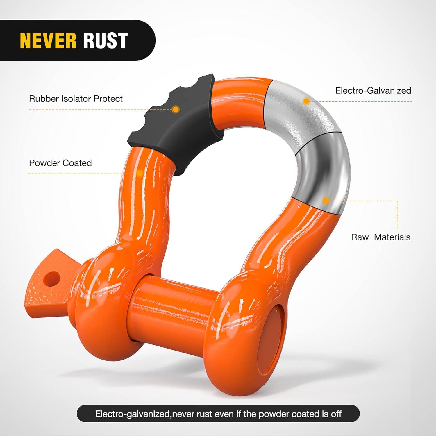Nilight 2 Pack 3/4″ D-Ring Shackle with 7/8″ Screw Pin 41,887lbs Break Strength, Heavy Duty Off Road Recovery Shackle with Isolators Washers for Use with Tow Strap, Winch, Off-Road Jeep Truck Vehicle(Cyber Orange)