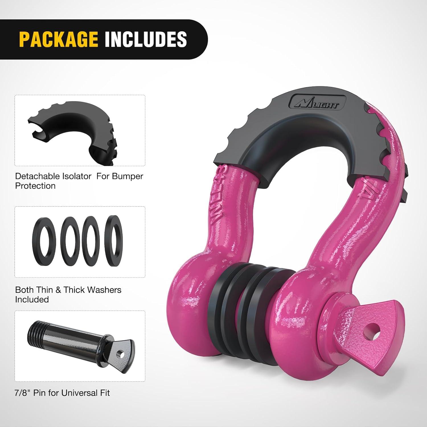 Nilight 2 Pack 3/4″ D-Ring Shackle with 7/8″ Screw Pin 41,887lbs Break Strength, Heavy Duty Off Road Recovery Shackle with Isolators Washers for Use with Tow Strap, Winch, Off-Road Jeep Truck Vehicle(Magenta)