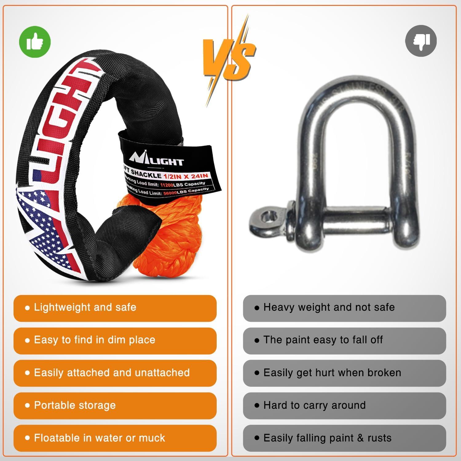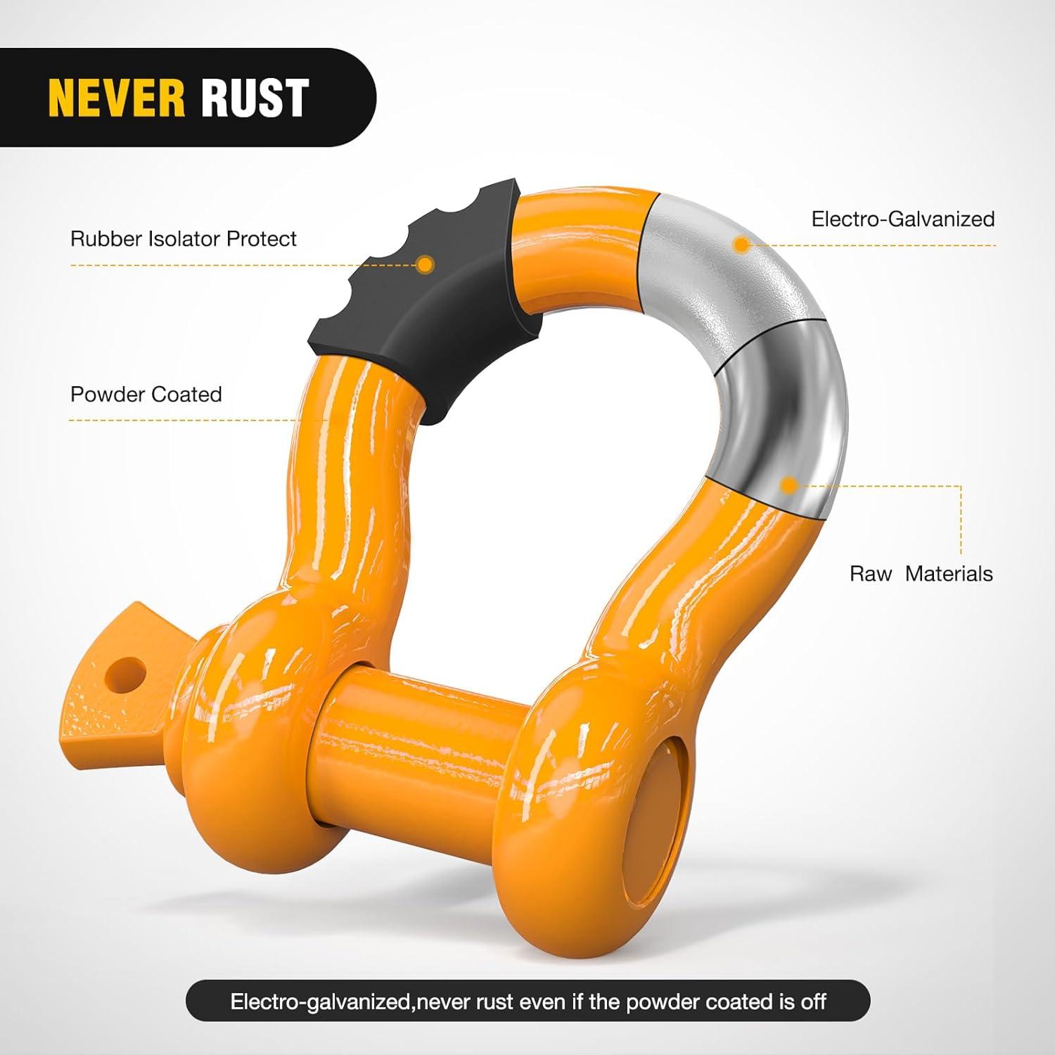 Nilight 2 Pack 3/4″ D-Ring Shackle with 7/8″ Screw Pin 41,887lbs Break Strength, Heavy Duty Off Road Recovery Shackle with Isolators Washers for Use with Tow Strap, Winch, Off-Road Jeep Truck Vehicle(Orange-31 Ton)