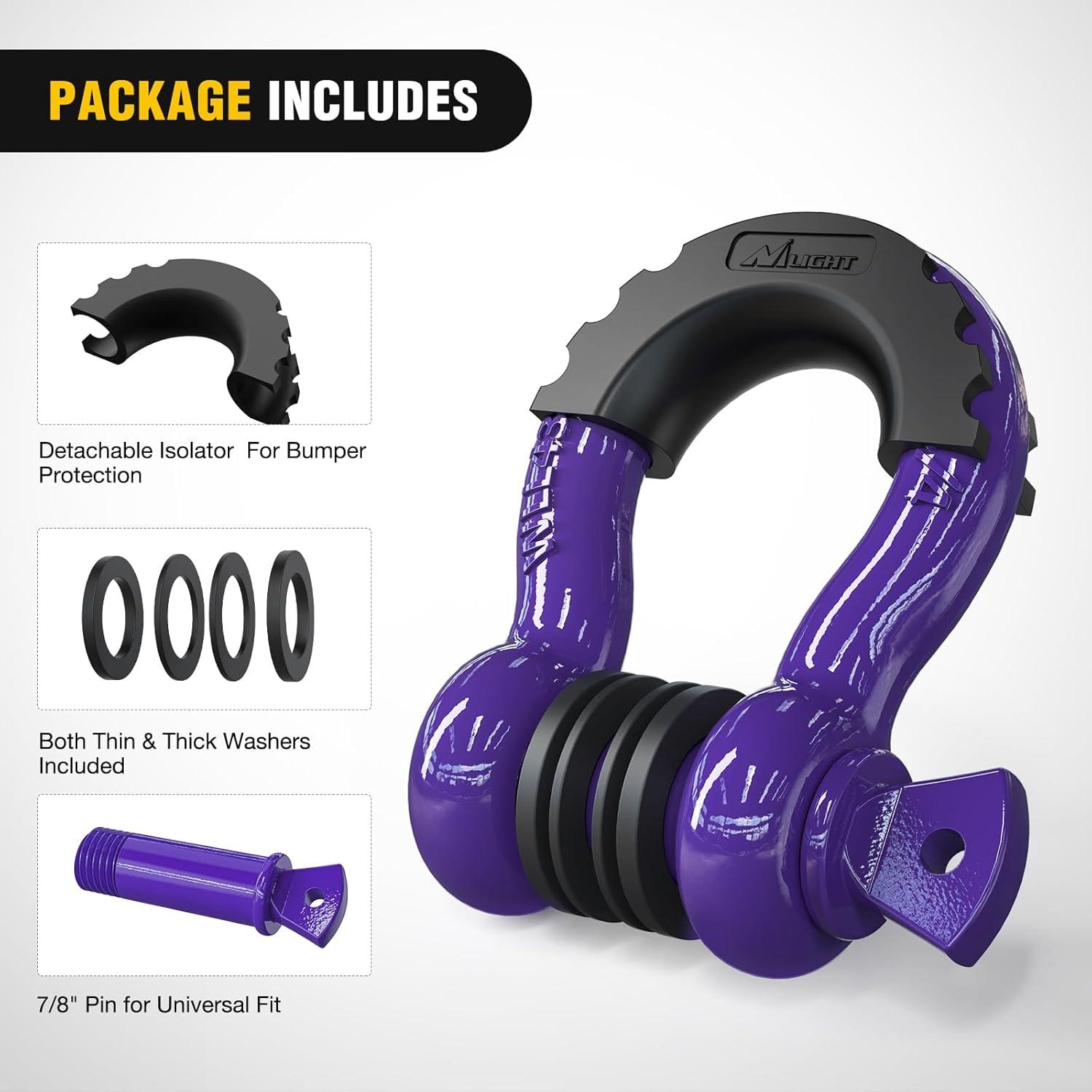 Nilight 2 Pack 3/4″ D-Ring Shackle with 7/8″ Screw Pin 41,887lbs Break Strength, Heavy Duty Off Road Recovery Shackle with Isolators Washers for Use with Tow Strap, Winch, Off-Road Jeep Truck Vehicle(Purple)