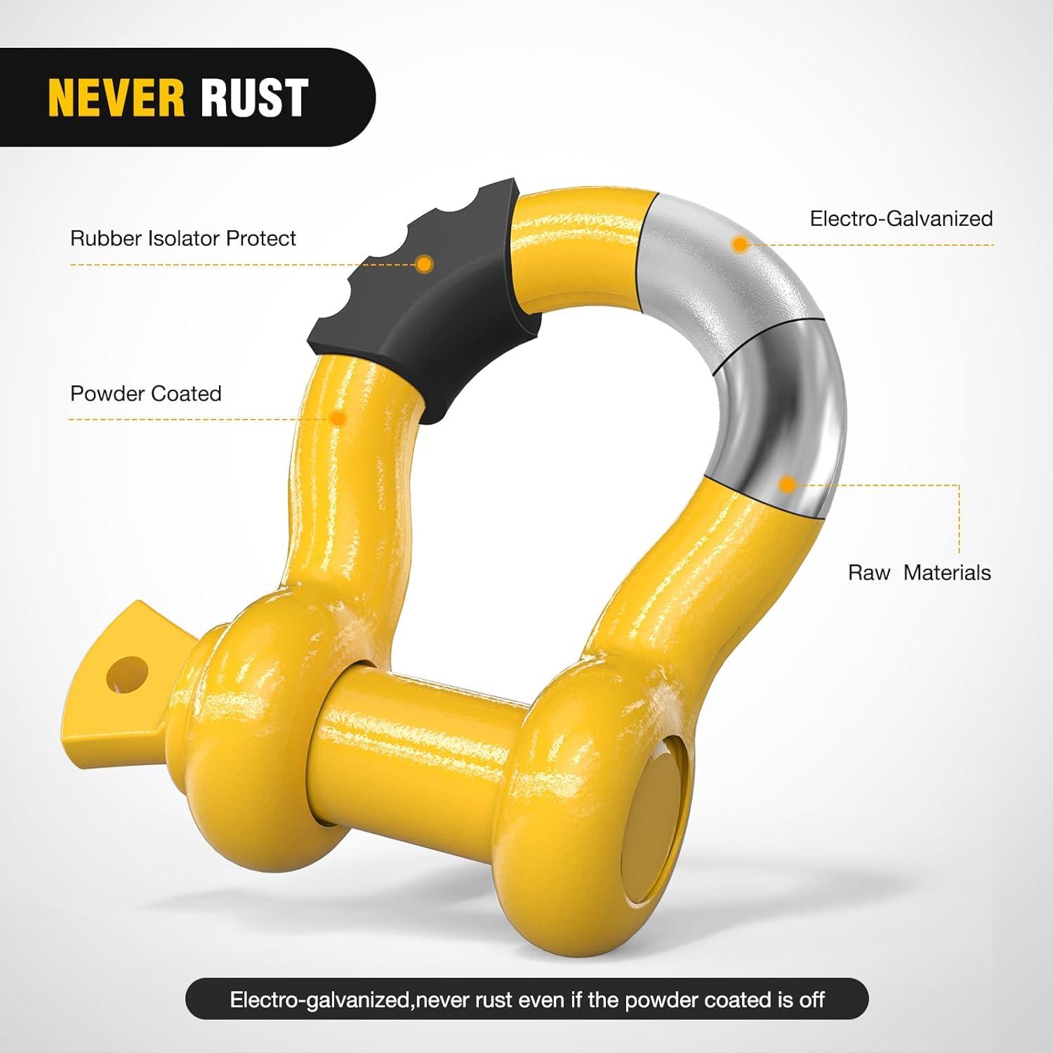 Nilight 2 Pack 3/4″ D-Ring Shackle with 7/8″ Screw Pin 41,887lbs Break Strength, Heavy Duty Off Road Recovery Shackle with Isolators Washers for Use with Tow Strap, Winch, Off-Road Jeep Truck Vehicle(Yellow)