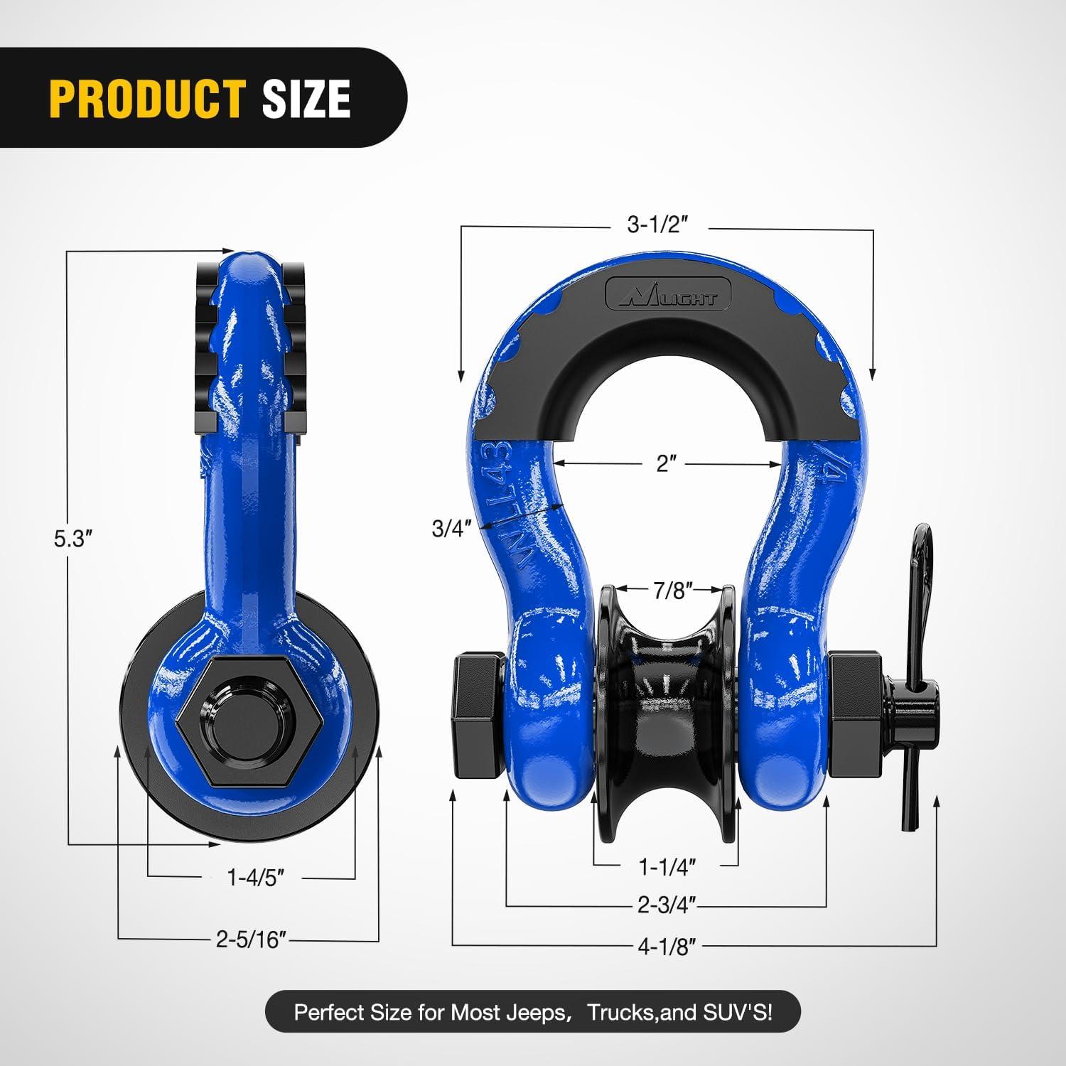 Nilight 2 Pack 3/4″ D-Ring Shackle with 7/8″ Screw Pin 41,887lbs Break Strength, Heavy Duty Off Road Recovery Shackle with Isolators Washers for Use with Tow Strap, Winch, Off-Road Jeep Truck Vehicle(Blue w/Towing Pulley)