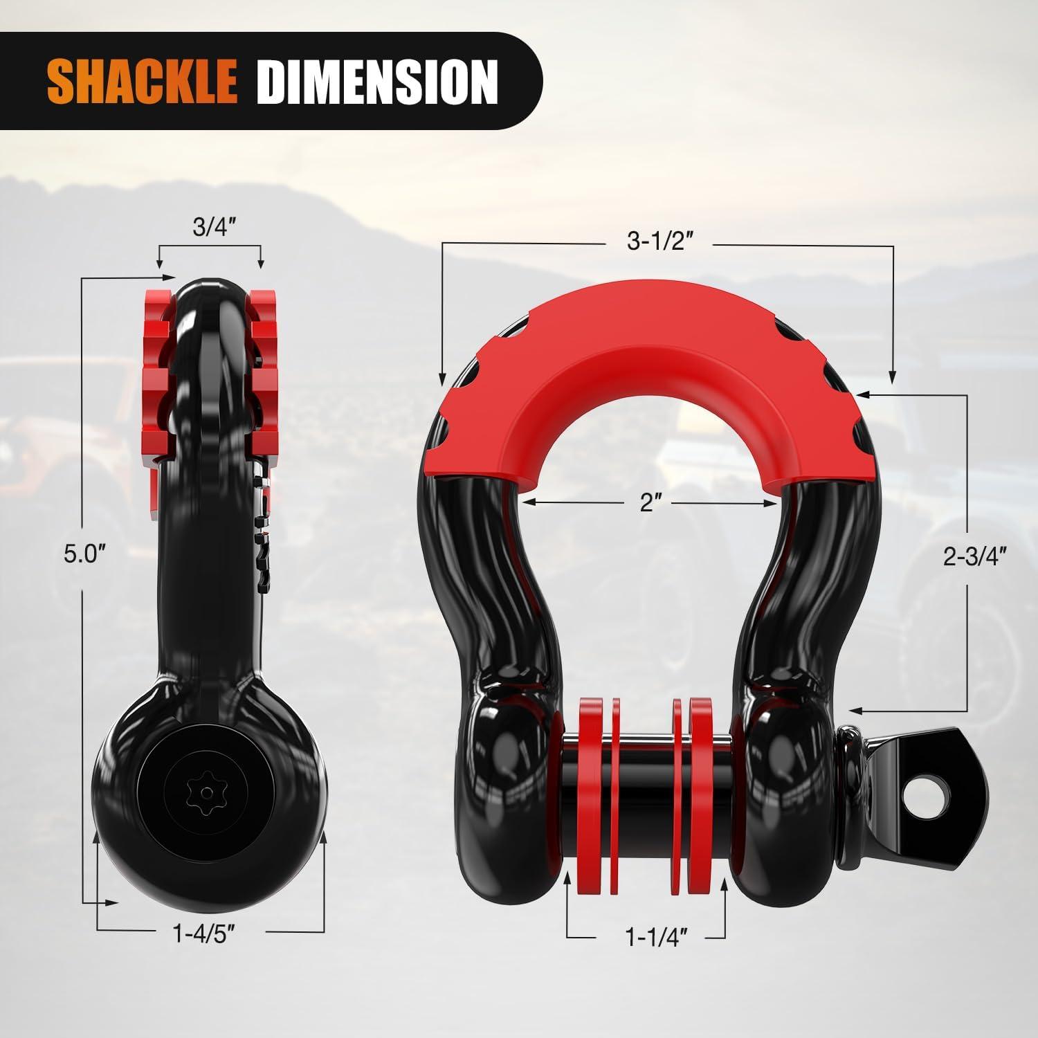 Nilight 2 Pack 3/4″ D-Ring Shackle with 7/8″ Screw Pin 41,887lbs Break Strength, Heavy Duty Off Road Recovery Shackle with Isolators Washers for Use with Tow Strap, Winch, Off-Road Jeep Truck Vehicle(Red-31 Ton)