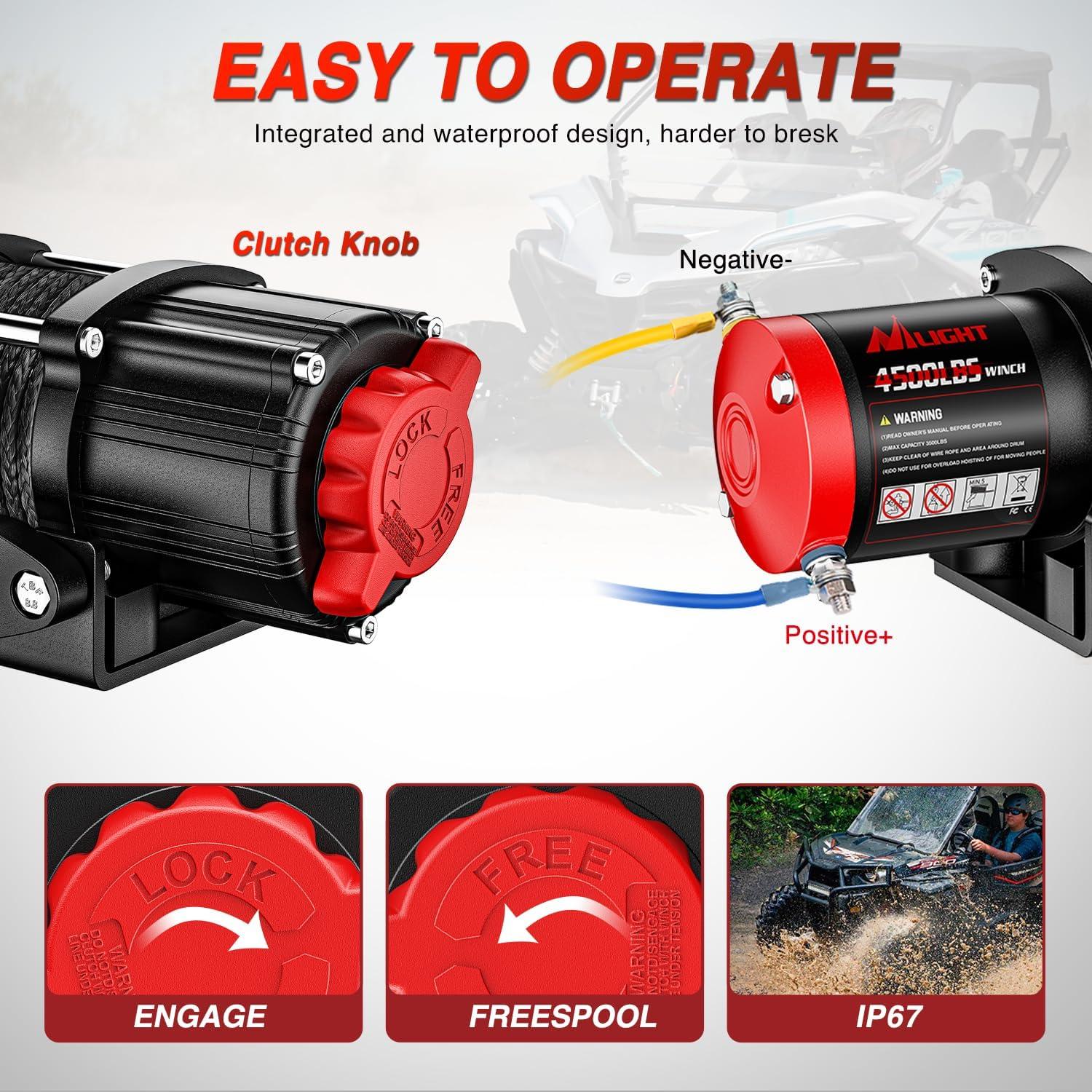 Nilight ATV UTV Electric Winch 12V 4500 lb Winches for Towing Trailer Truck Jeep Off Road Portable Waterproof IP67 Winch with Synthetic Rope Wireless & Wired Remote Control Hawse Fairlead Mount Plate(12V 4500 lbs)